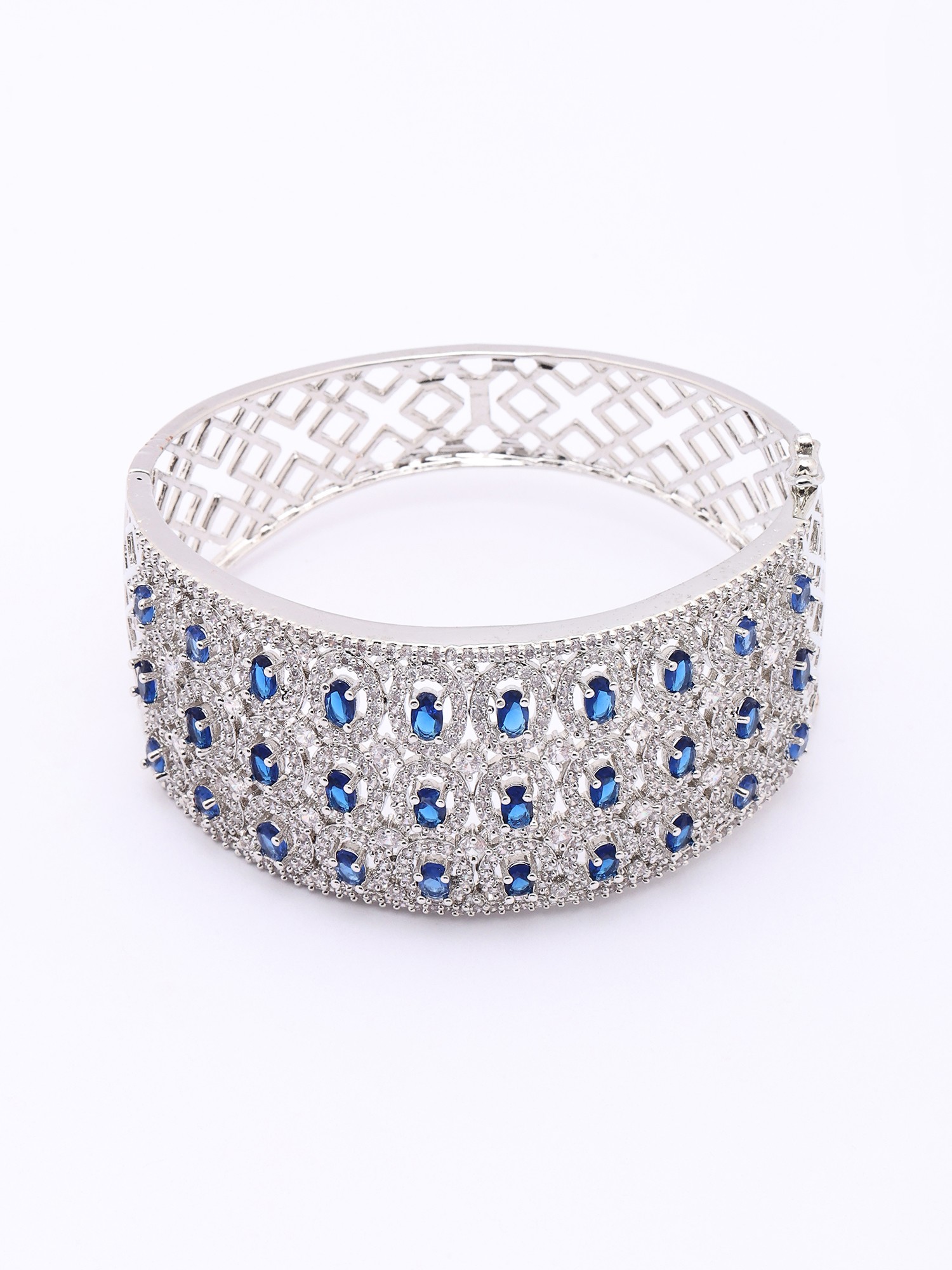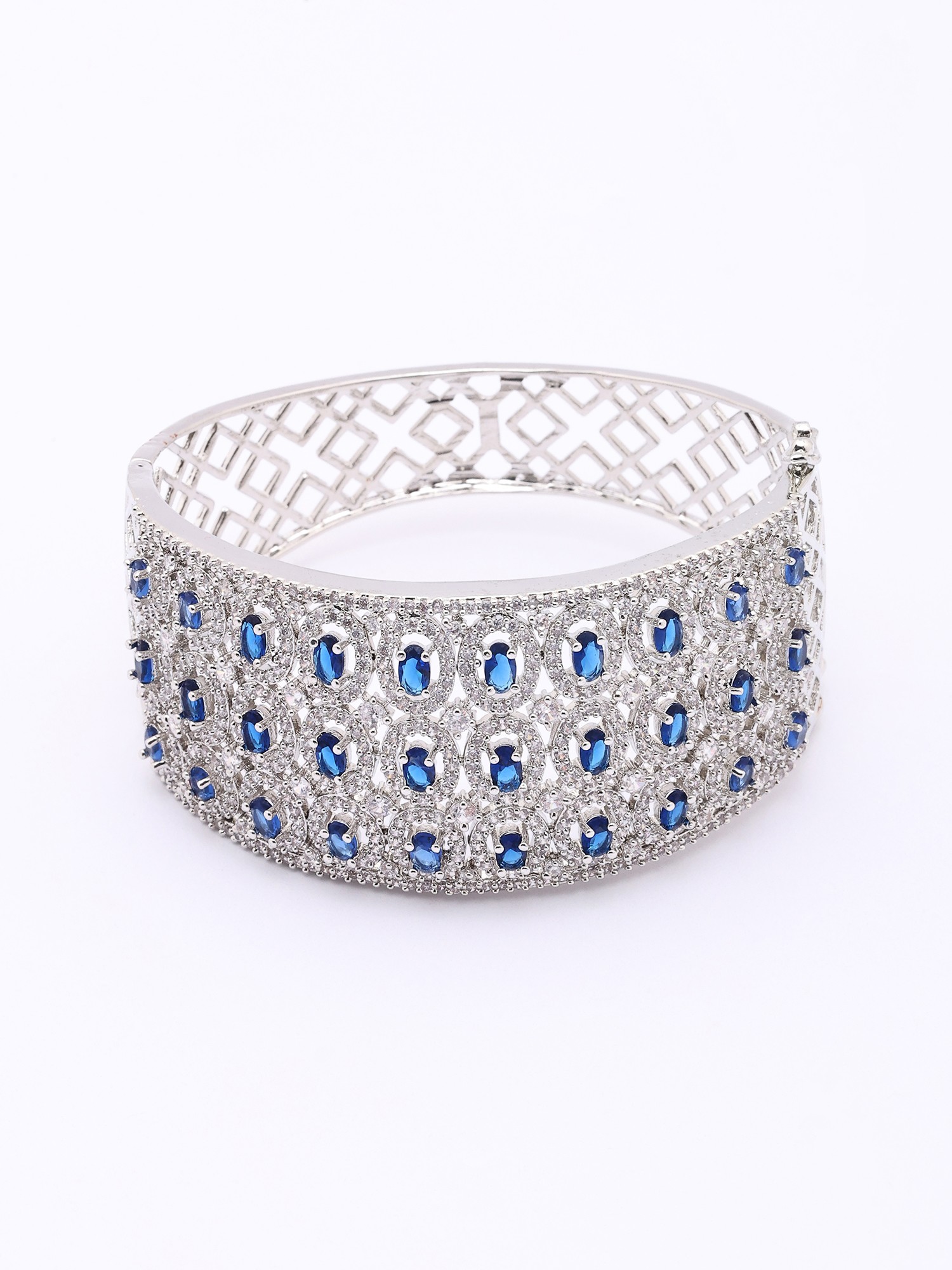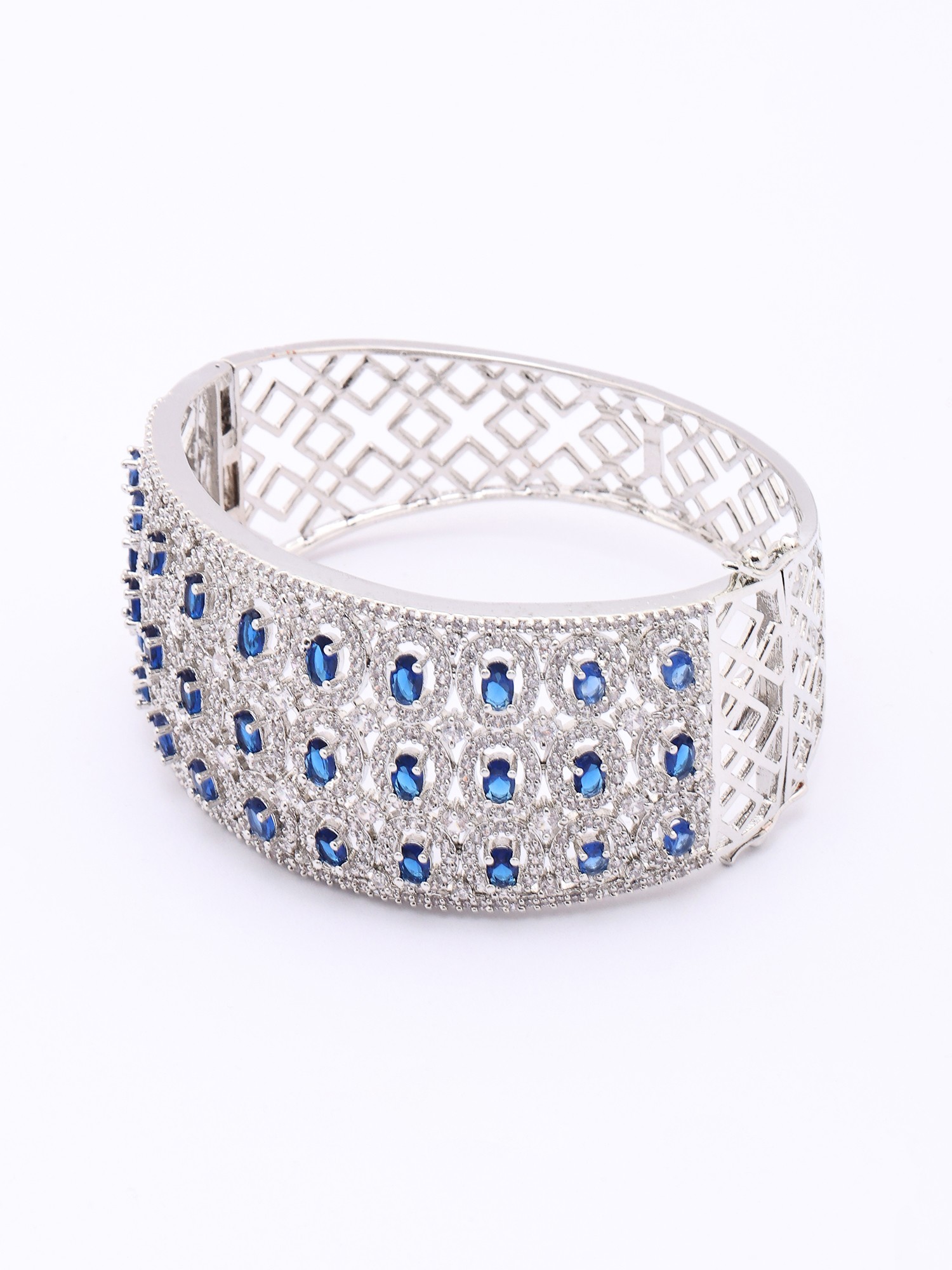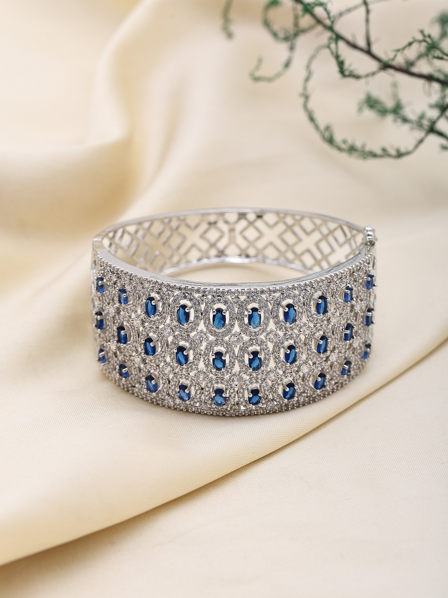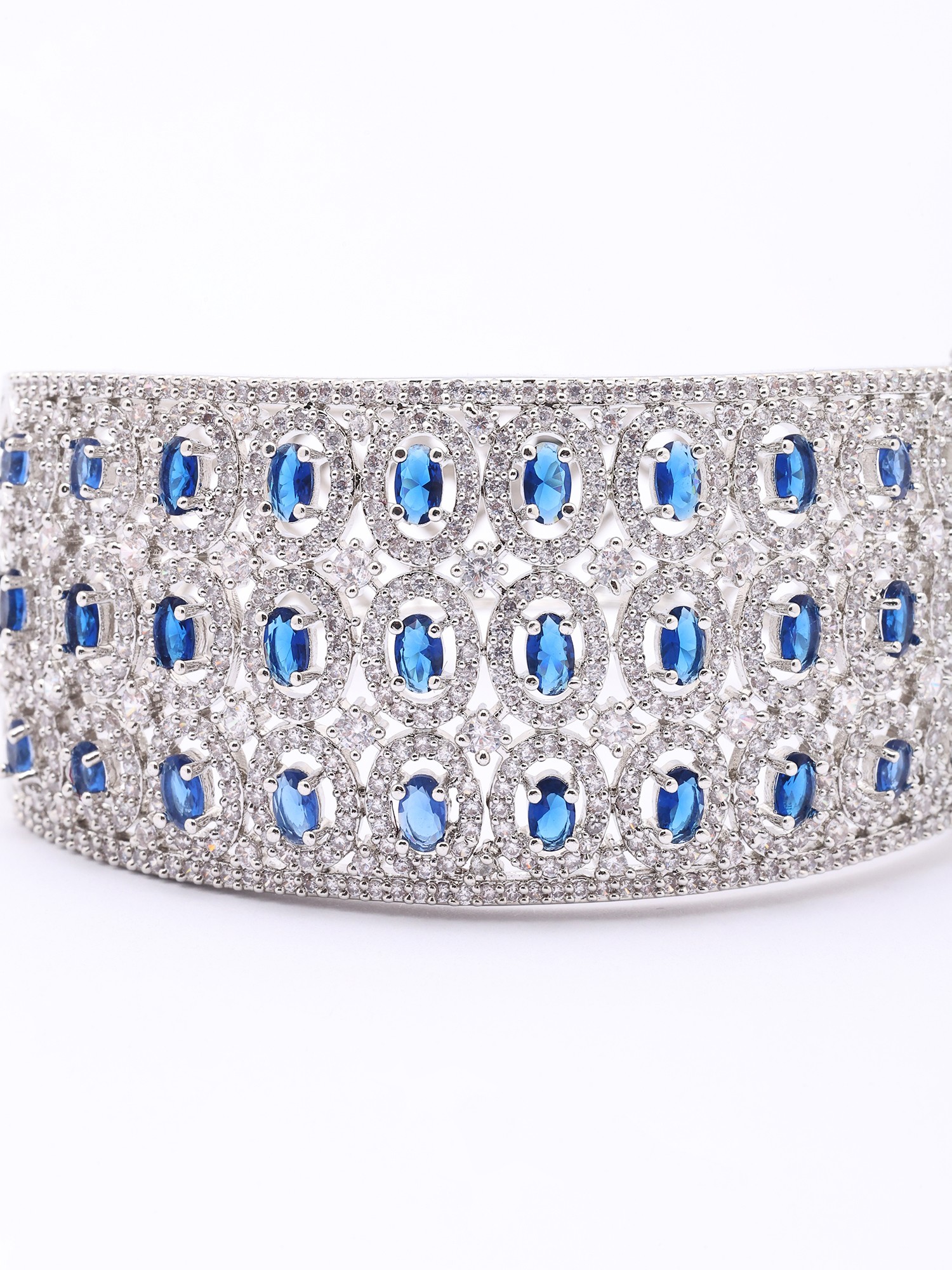 Each cuff is a testament to meticulous craftsmanship, hand-set with brilliant American diamonds and vibrant sapphire-hued stones. The intricate metalwork, employing premium alloys, showcases a dedication to enduring quality and aesthetic perfection. You'll appreciate the smooth, polished finish that feels as luxurious as it looks.