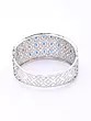 The cuff's generous 2.60-inch width provides a commanding presence, while its inner diameter of 1.75 inches ensures a comfortable yet secure fit. A height of 1.20 inches allows the dazzling arrangement of stones to be fully appreciated. The openwork latticework on the interior adds an unexpected lightness and intricate detail, visible only to the wearer.