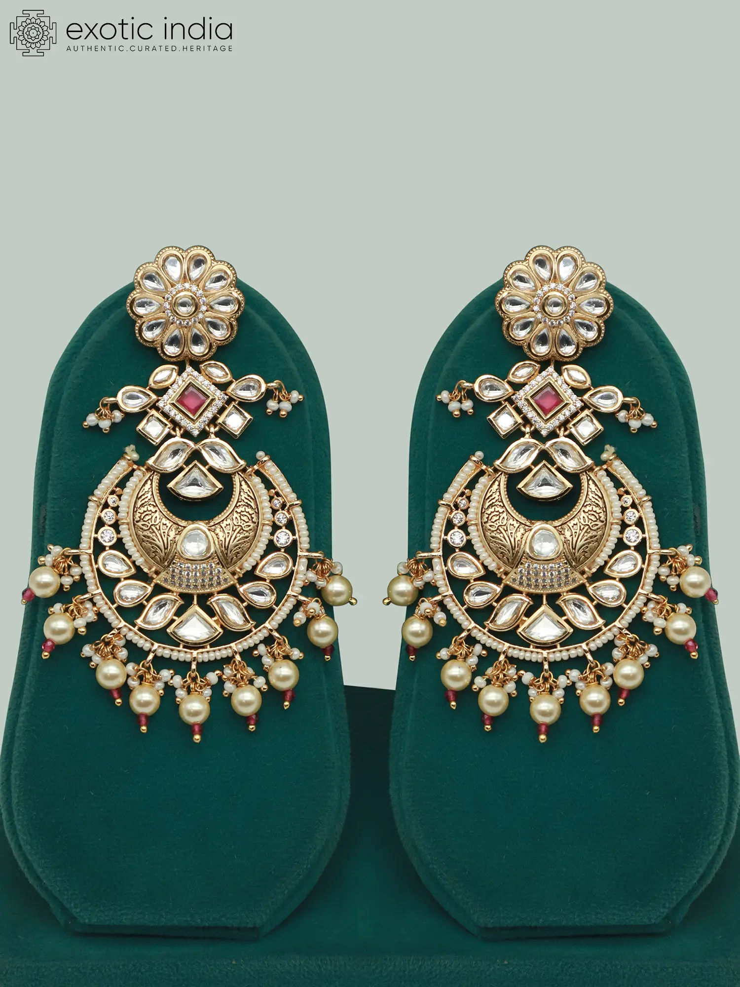 Features intricate Kundan stonework for a brilliant shimmer.