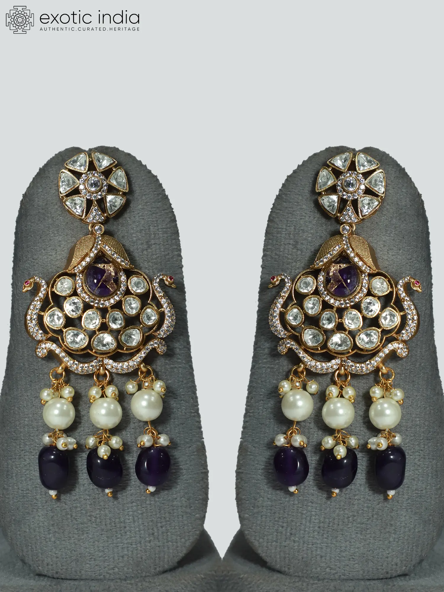 Peacock Pendant and Earrings Set with Multicolor Stones and Pearl Drop