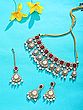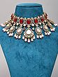 Elegant choker necklace featuring intricate red and white Polki work.