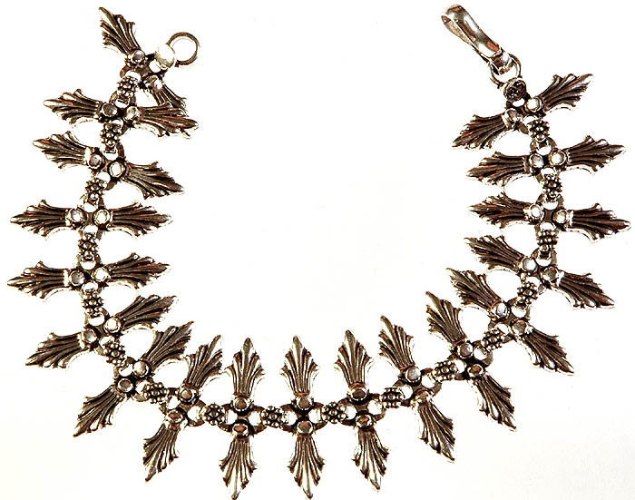 Observe the captivating pattern of delicate, stylized motifs that elegantly flow along the seven-and-a-half-inch length. Each component is meticulously detailed, featuring a central, jewel-like accent that catches the light, surrounded by gracefully fanned extensions. The thoughtful construction allows for a fluid drape on your wrist, ensuring both comfort and an eye-catching visual appeal that speaks of sophisticated design.