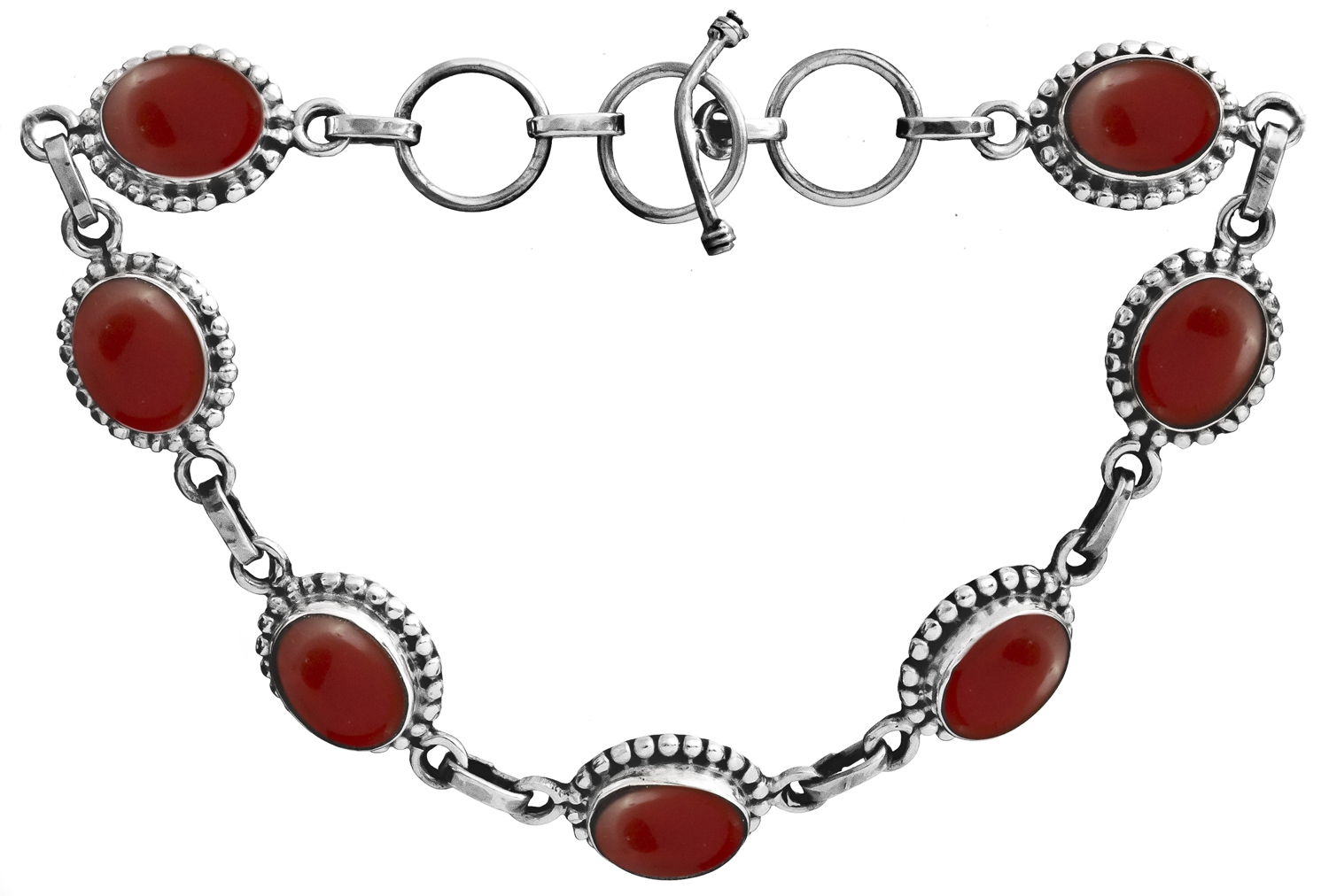 This bracelet is made up of sterling silver and gemstones of two kinds of your choice; garnet or sunstone. Garnet is an excellent gemtsone for blood circulation and keeping the heart healthy. Sunstone, on the other hand, brings good luck and fortune to its wearer. The bracelet is 7.5 inch in length and weighs 10.3 grams. The gemstones are oval-shaped and affixed to sterling silver which are then linked together to form the bracelet.