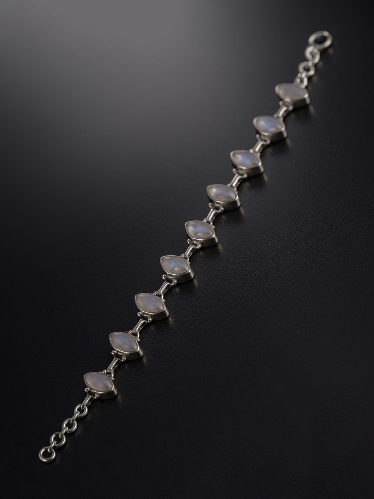 When it comes to fashion, the steamy shade of Moonstone is an ideal enunciation to Victorian enthused trends. Its semi-transparent color makes a fascinating match with pearls, as well as other solid gems, such as Aquamarine and Rose Quartz. With sterling marquise shape, this item makes a unique bracelet for Indian ladies and women. It comes with about 4 circles and a hook. The hook and rings can be used to resize the bracelet to fit the wrist. The kind of gem used in the production of this bracelet is the rainbow moonstone, and the material of the bracelet is a gemstone. The type of metal used for the chains is derived from sterling silver. This is an intriguing as well as an exciting item with moonstones for moonlight glows.