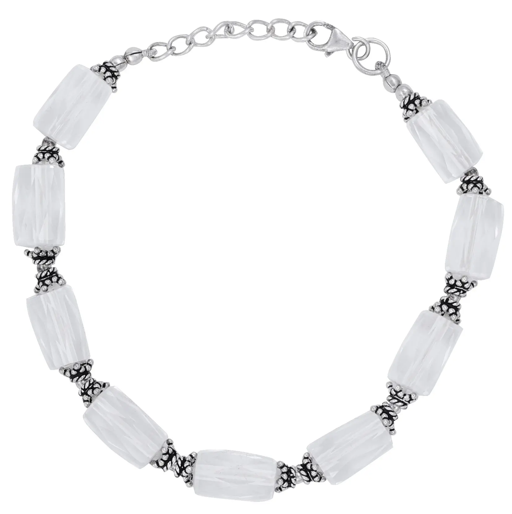 A fascinating combination of elegance and everlasting brilliance, adorn your wrist with the Sterling Silver Attractive Bracelet featuring Faceted Crystal Stones. The bracelet's faceted crystal stones are subtly displayed by the sterling silver links, giving it an alluring appearance. Wear this piece to showcase the timeless appeal of sterling silver combined with the stunning beauty of faceted crystals, adding a dash of sophistication and a radiant shine to your ensemble.