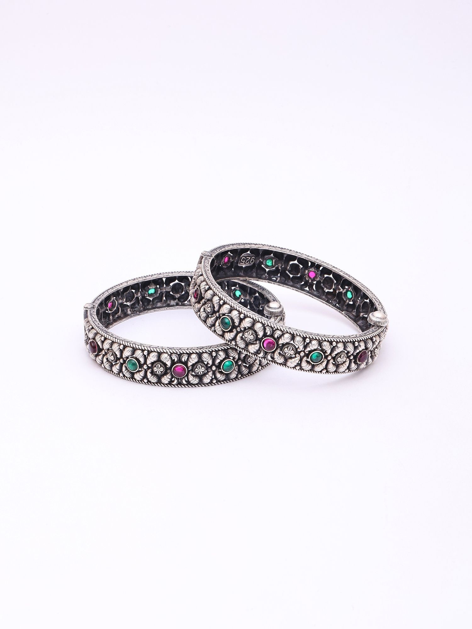 Pair of Ornate Traditional Bangles with Stone Embellishments