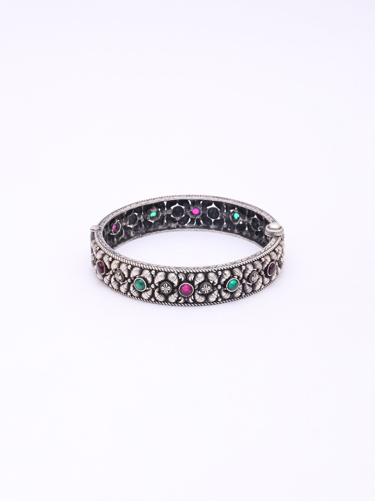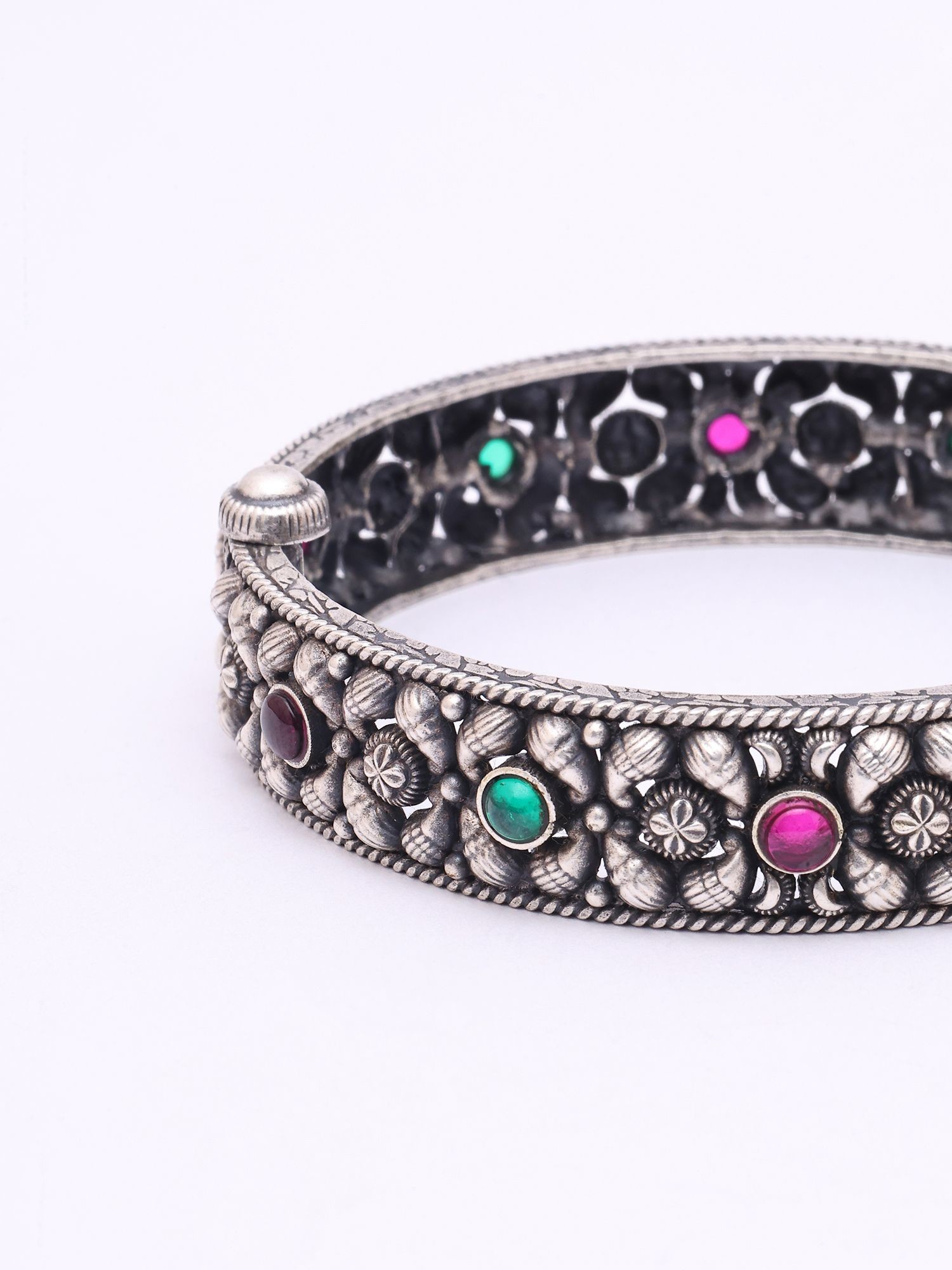 Polki Diamond Navagraha Screw Openable Sterling Silver Bangle