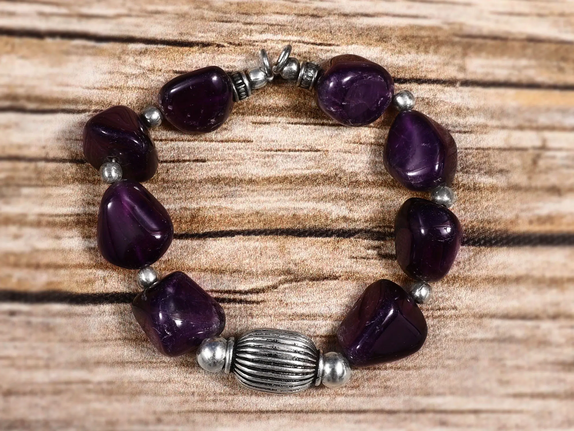 Adorn your wrist with the captivating charm of a sterling silver bracelet featuring amethyst gemstones. This bracelet combines the timeless elegance of sterling silver with the enchanting purple hues of amethyst, creating a stylish and versatile accessory. Embrace the soothing energy and vibrant beauty of amethyst, allowing this sterling silver bracelet to become a statement piece that reflects your style.
