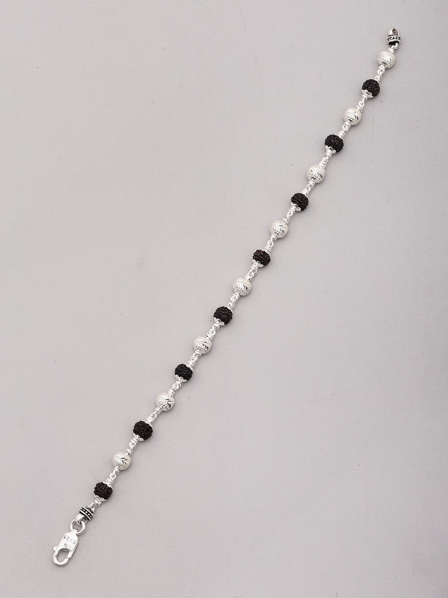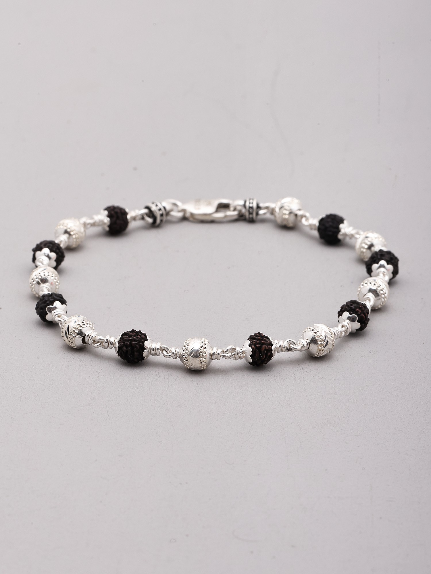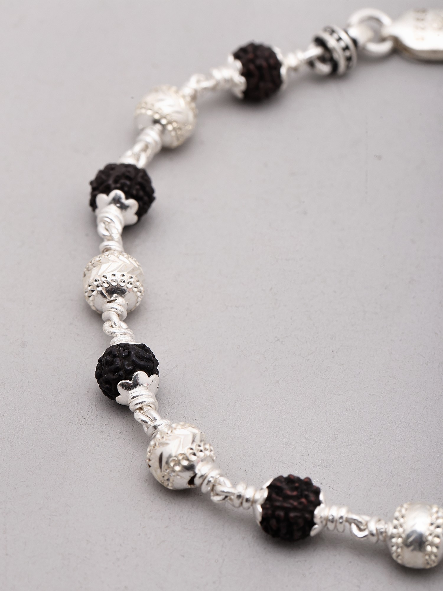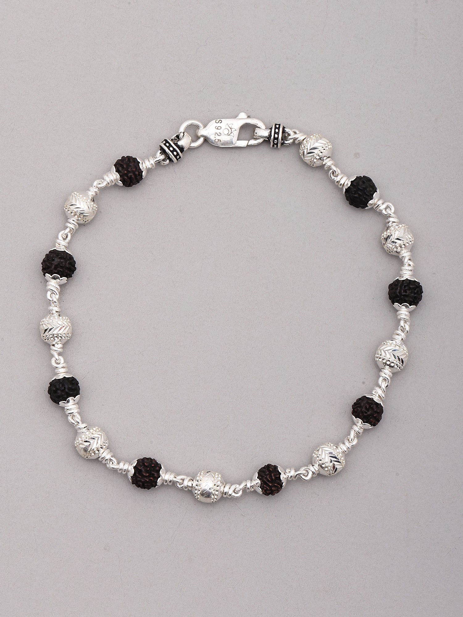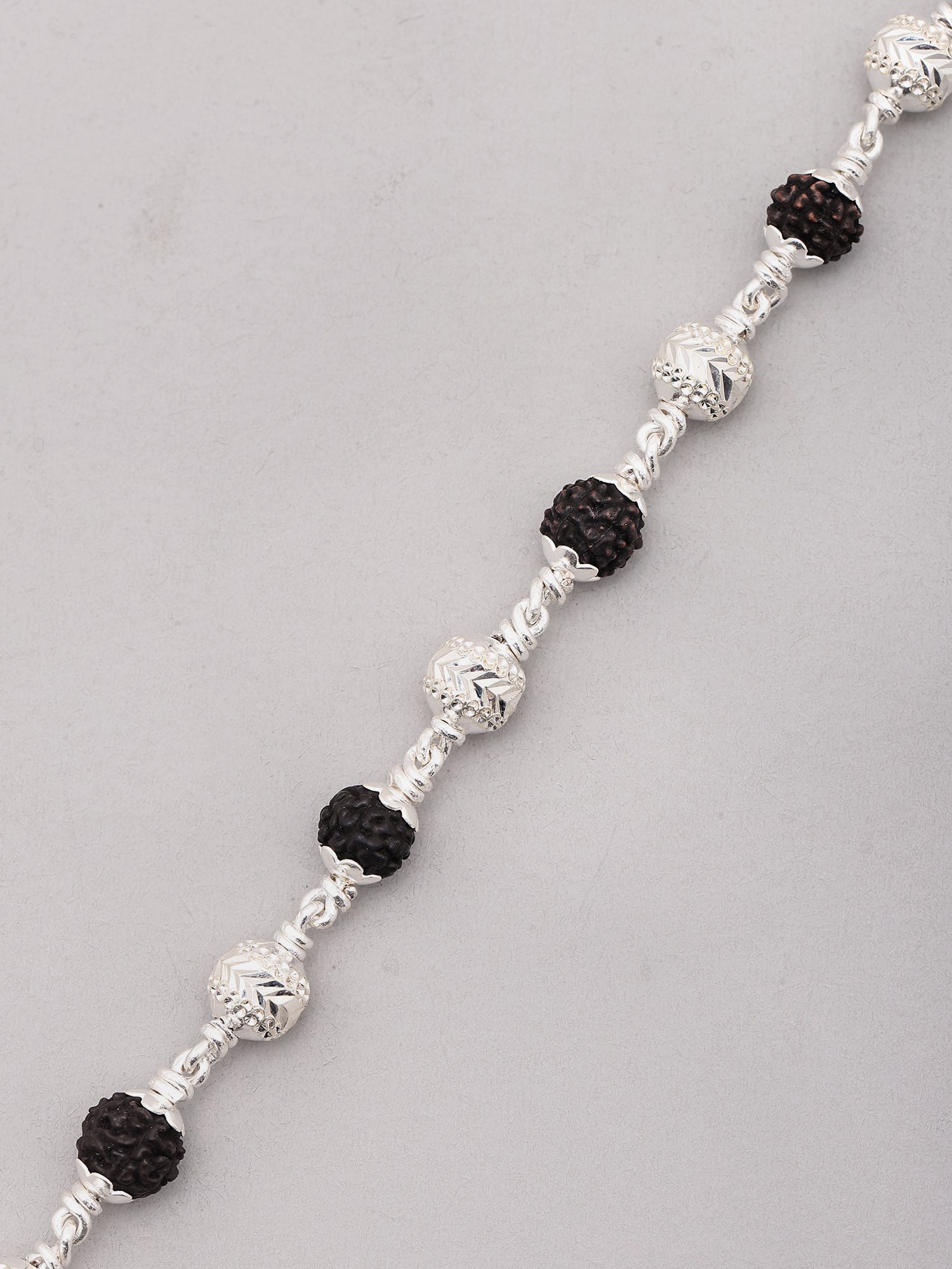 Sterling Silver Bracelet with Genuine Certified Rudraksha & Textured Silver Beads