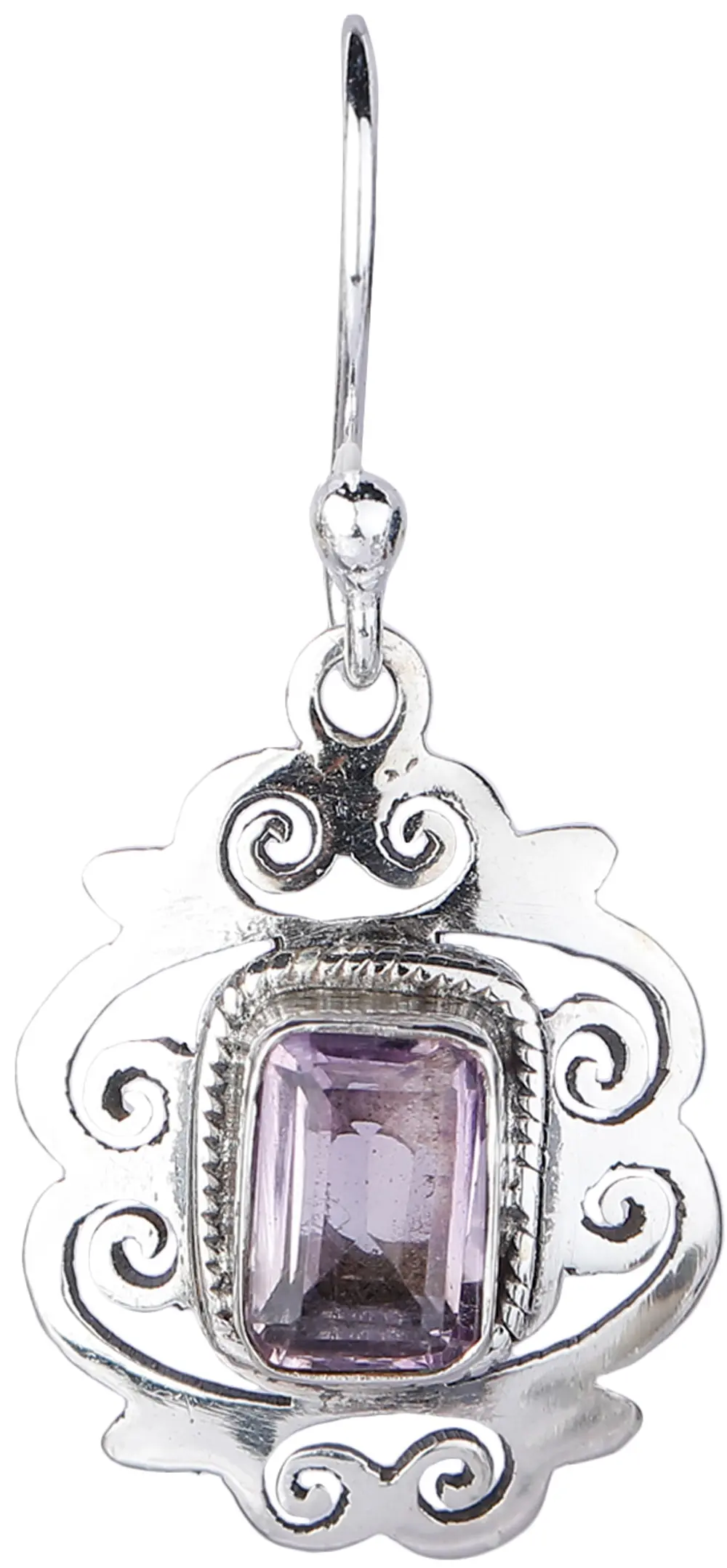 Sterling Silver Earrings with Rectangular Cut Amethyst