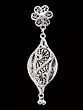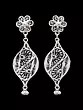 Features an intricate floral stud design transitioning to a filigree teardrop pendant.