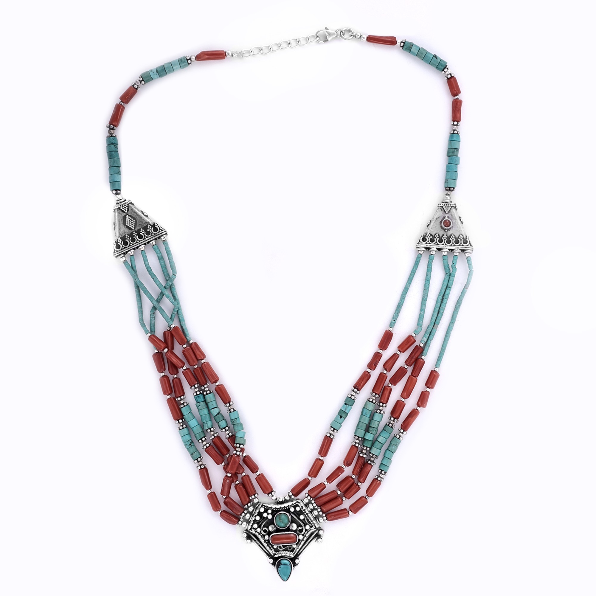 Through this carefully designed necklace that skillfully blends the lively flare of blue with the organic elegance of coral, you may up your style ante. The sterling silver setting elevates the entire piece, producing a chic and classic accessory with a hint of seaside appeal. This necklace is a versatile expression of style that captures the beauty of natural elements in a sophisticated and unique way, whether you choose to wear it on a slender chain for a classic appearance or match it with other pieces inspired by the ocean.