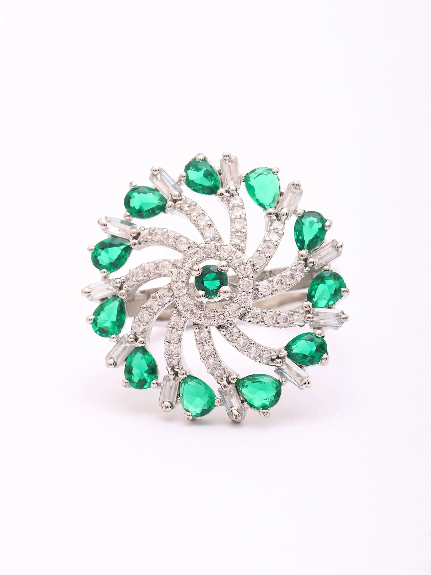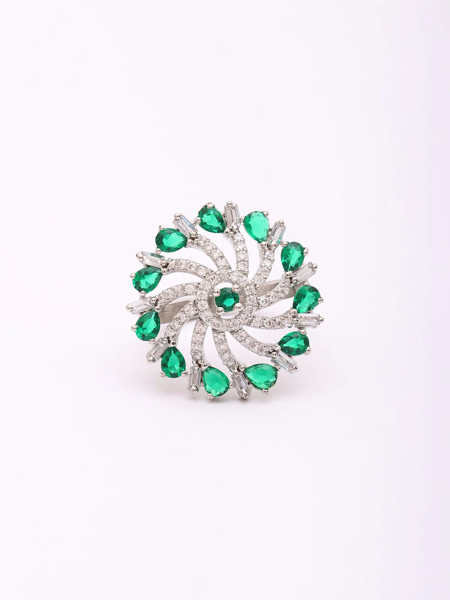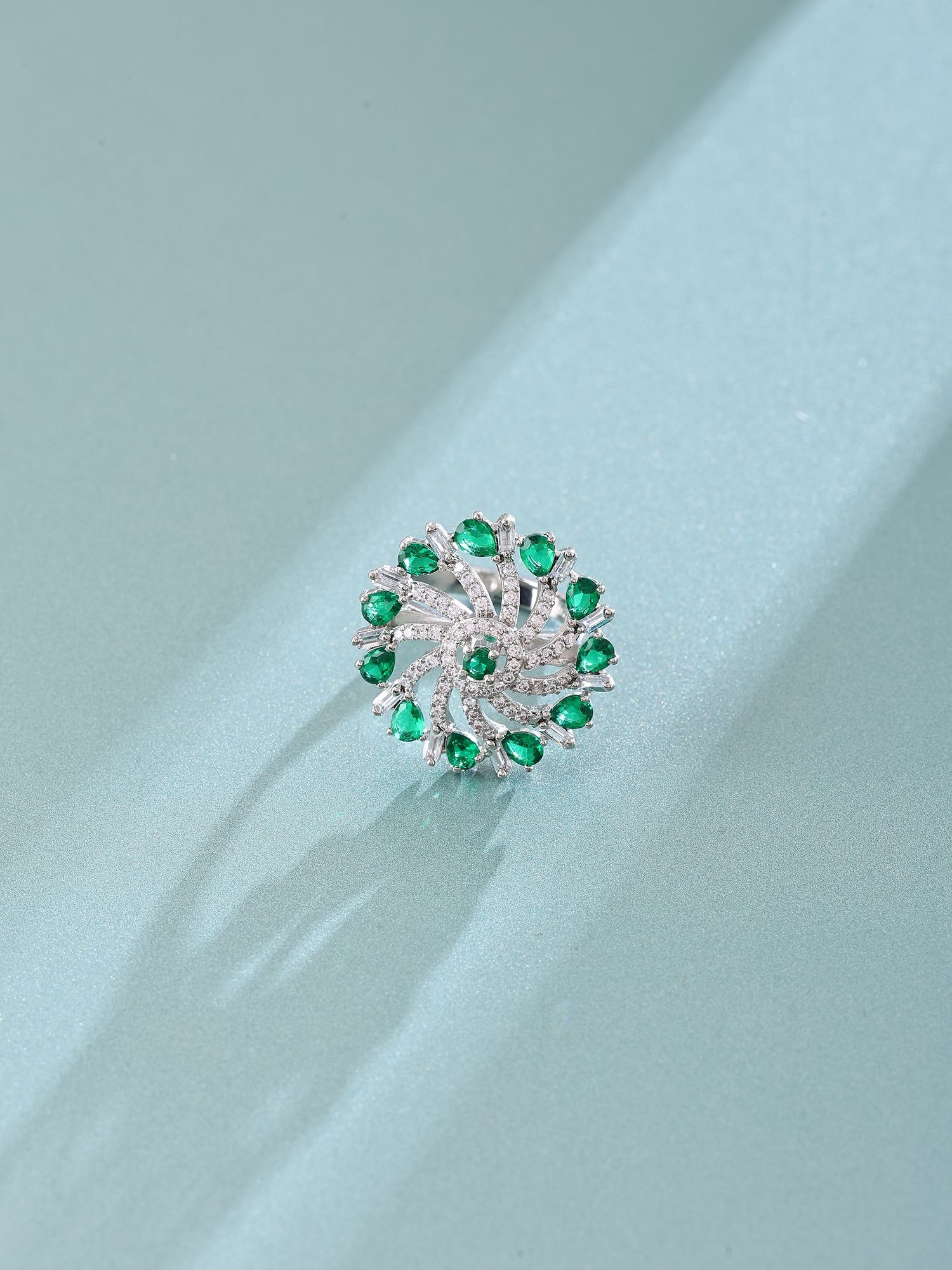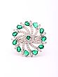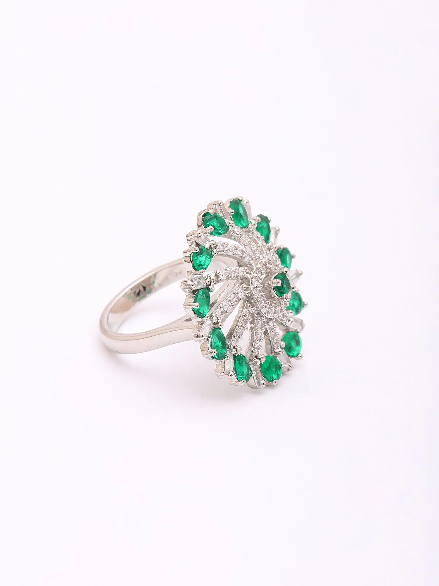 Flower Design Sterling Silver Ring with Emerald Gemstone