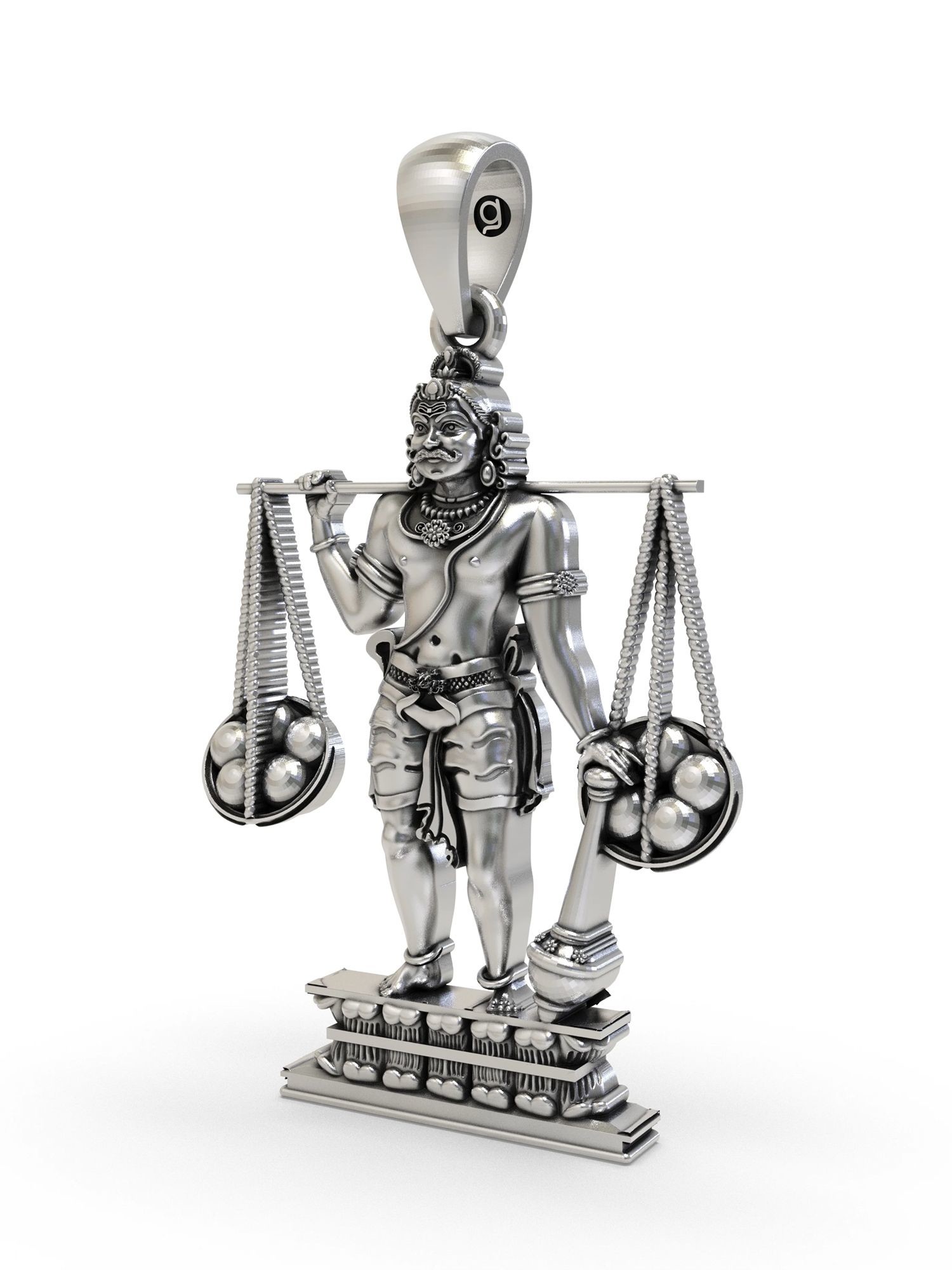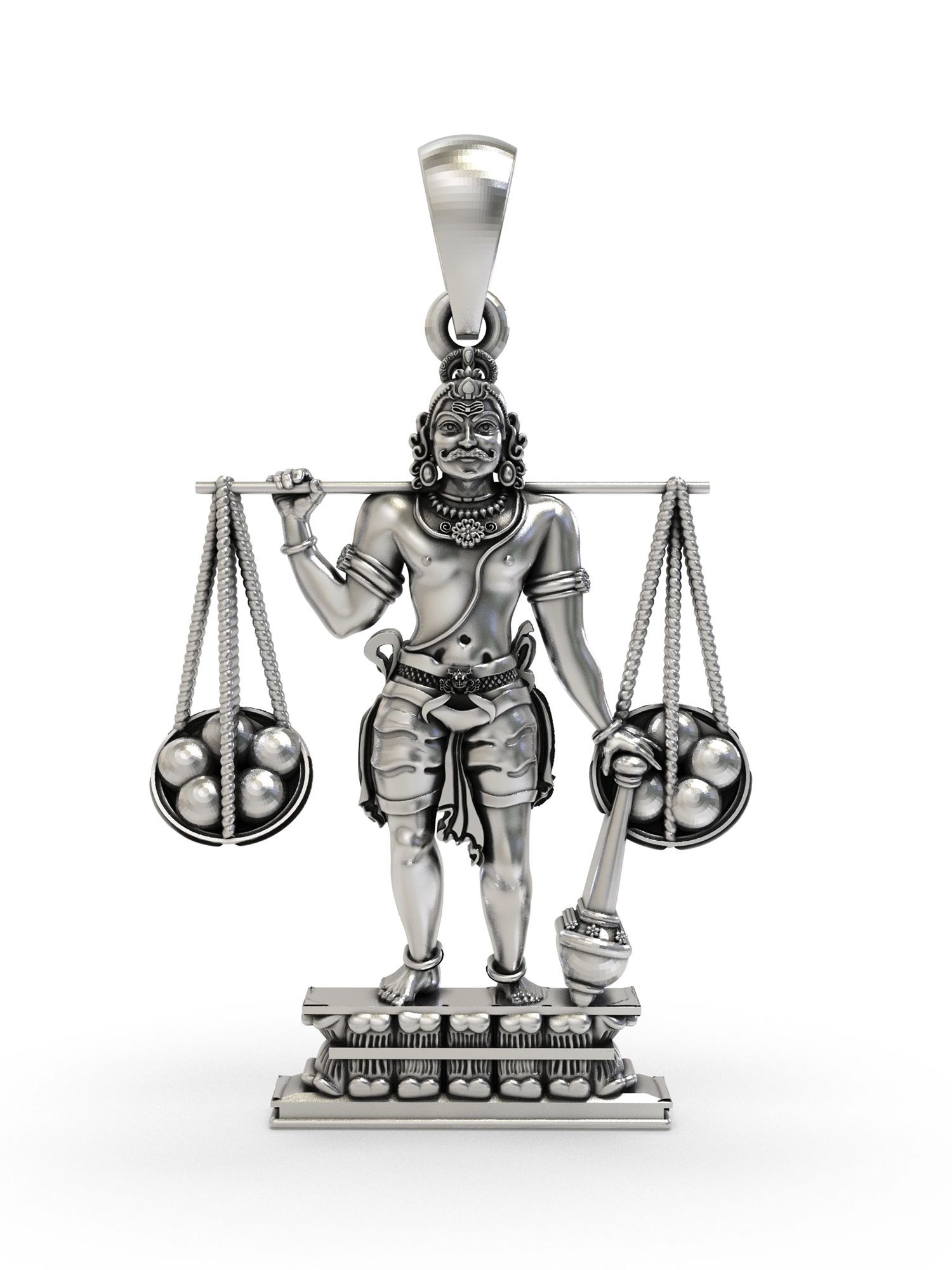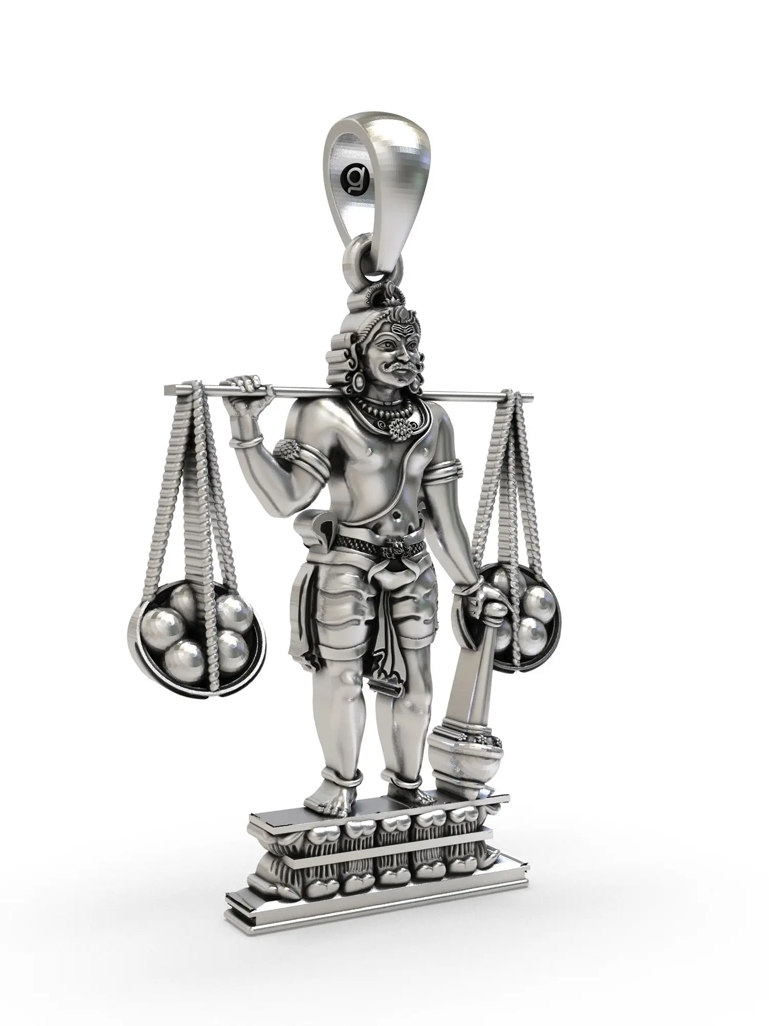 Sterling Silver Pendant with Trishul, Nandi, and Damru Symbols
