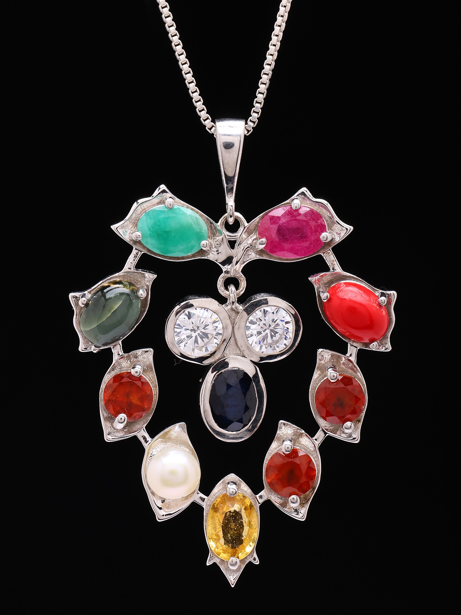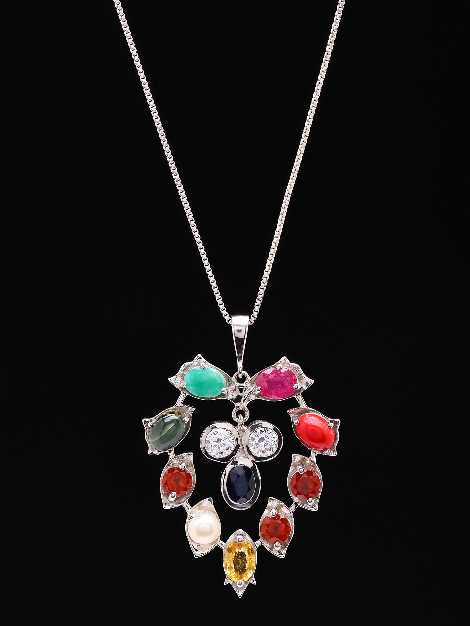 Features a captivating arrangement of assorted natural gemstones, including emerald, ruby, sapphire, citrine, and pearl.
