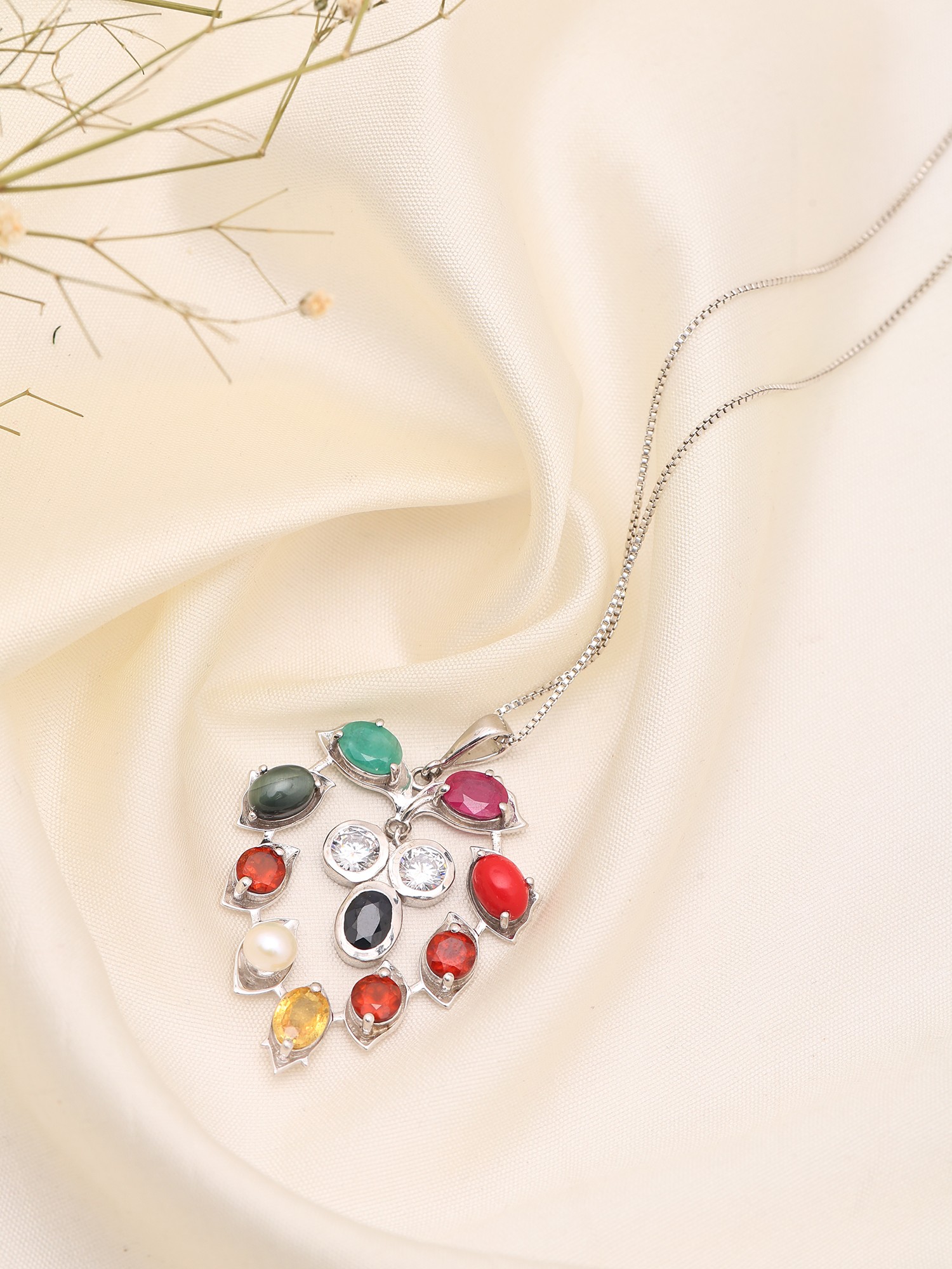 Each component is meticulously brought to life through the hands of skilled artisans. Crafted from lustrous sterling silver, its enduring quality provides a perfect canvas for the array of genuine gemstones. You'll appreciate the intricate detailing that forms the delicate leaf-like settings, cradling each stone with precision and care, a testament to time-honored silversmithing techniques.