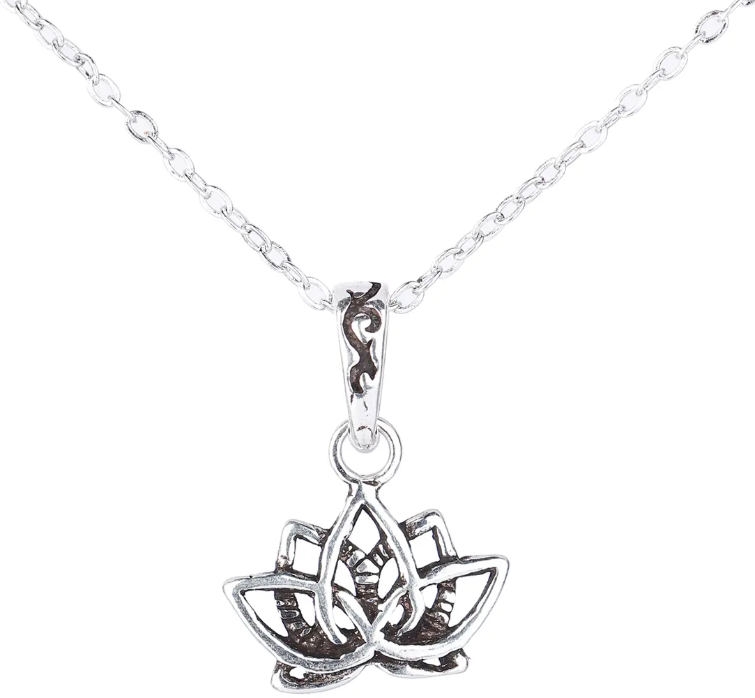 Discover the exquisite beauty and profound symbolism of this sterling silver lotus pendant. The lotus flower, a revered motif across many cultures and spiritual traditions, particularly within Hinduism, represents purity, enlightenment, rebirth, and spiritual awakening. This pendant captures the essence of this sacred bloom with its intricate, openwork design, allowing light to play through its delicate petals.