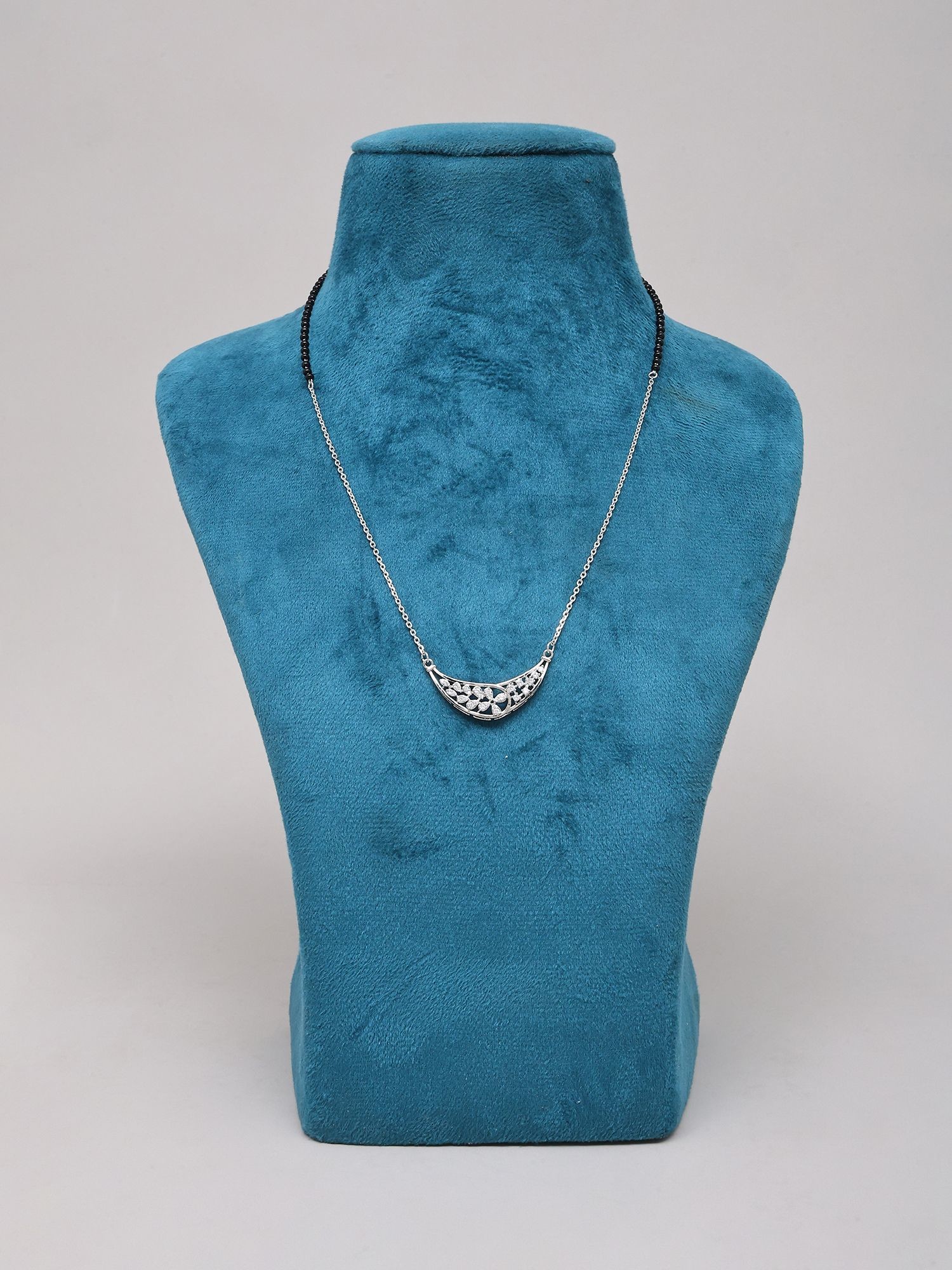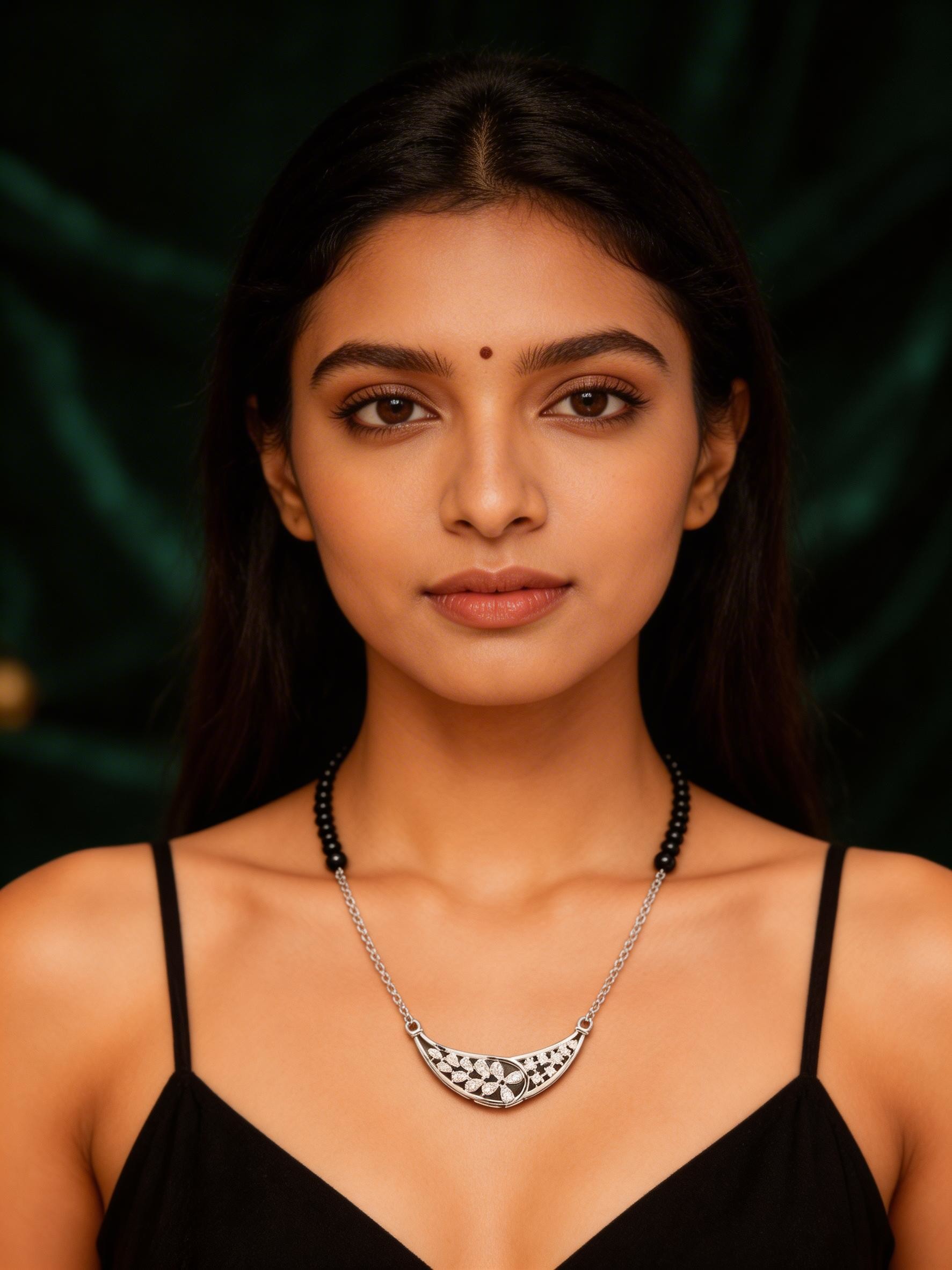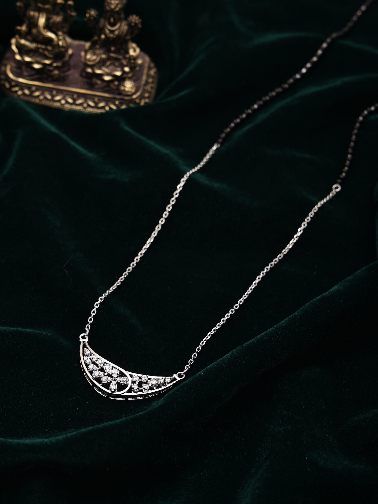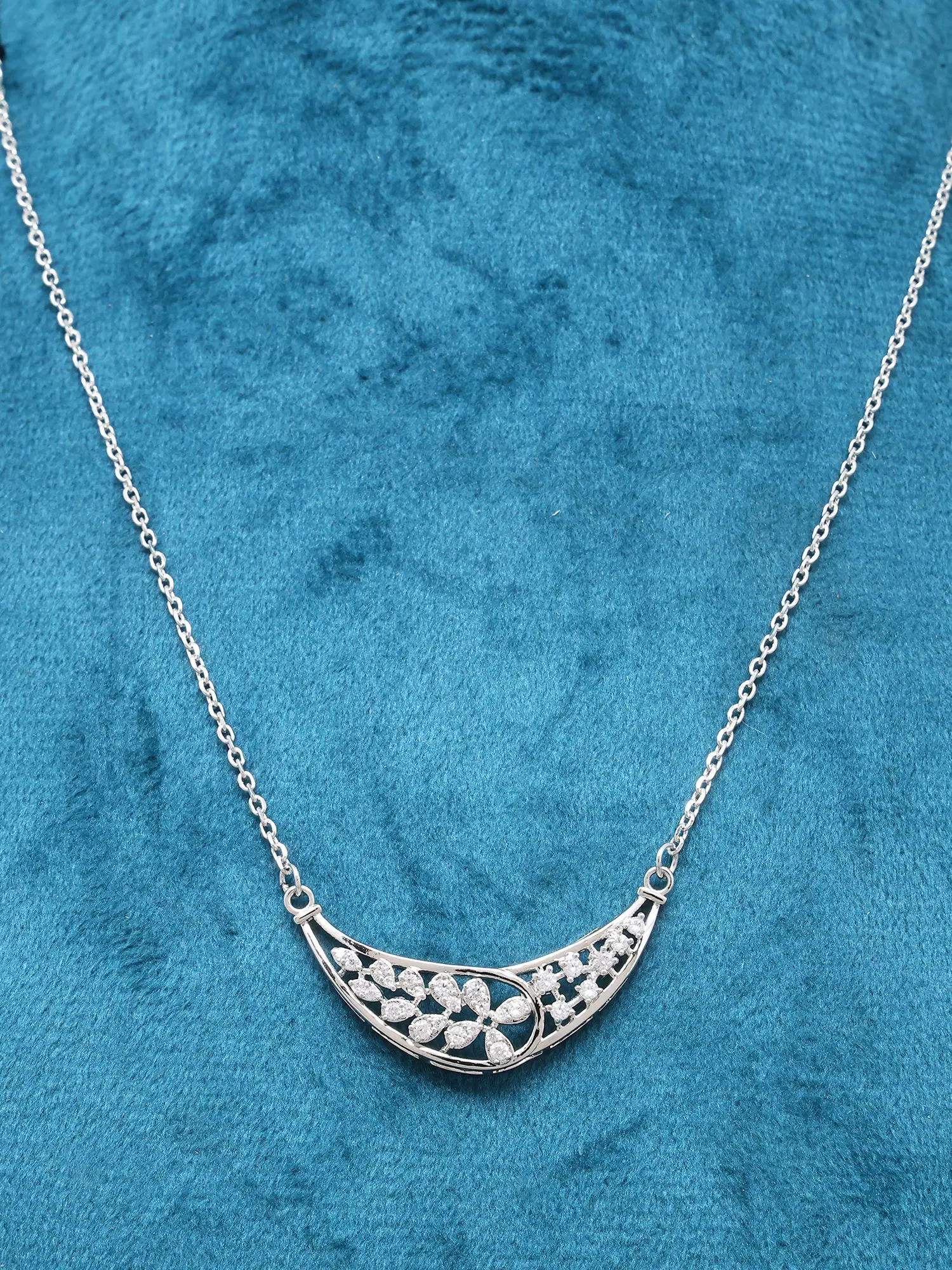 Sterling Silver Mangalsutra Necklace with Curved Floral Zircon Pendant
