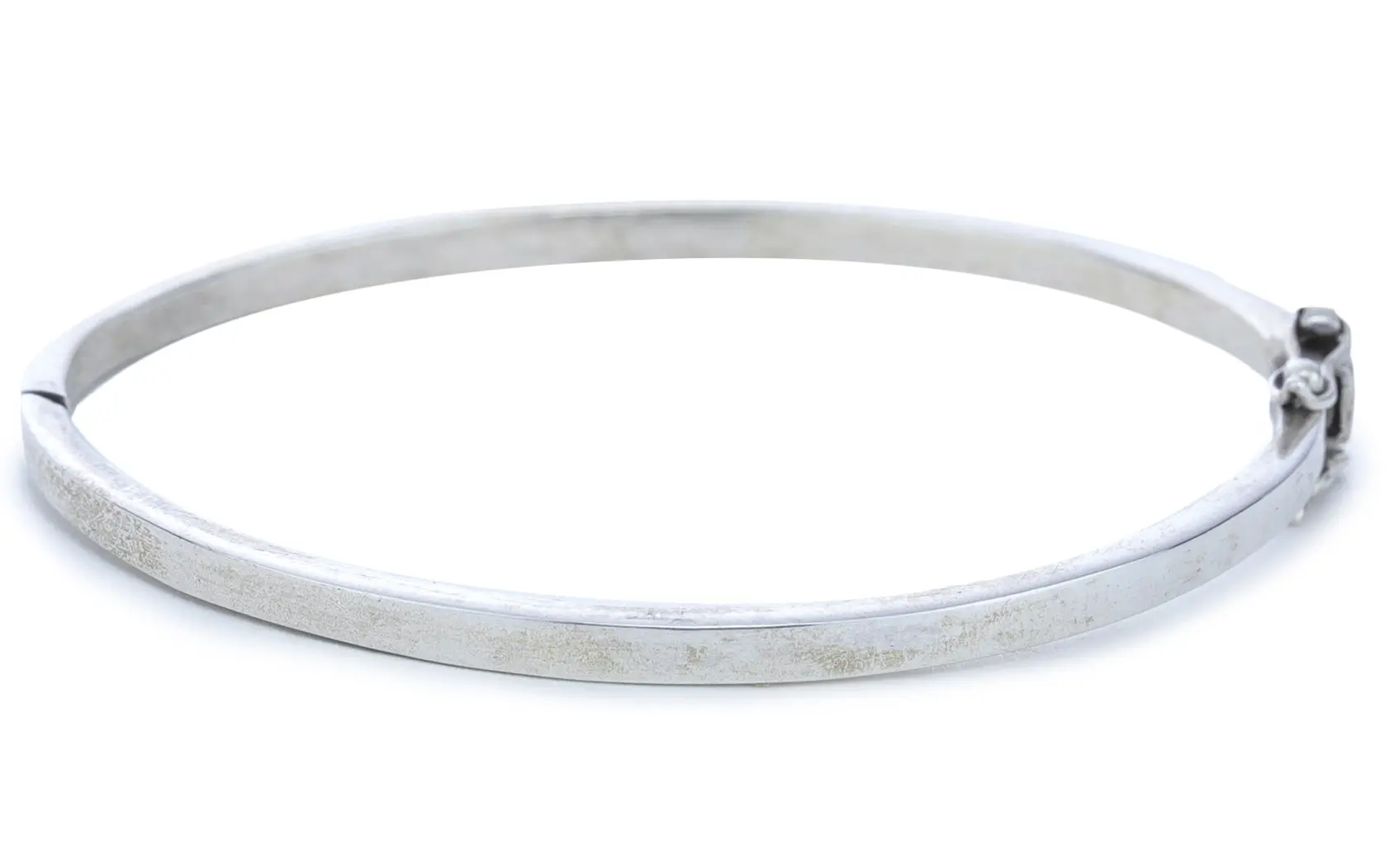 Effortlessly transition from day to night with this adaptable piece. It is the perfect complement to a professional office look or a chic evening ensemble. Its classic design makes it a versatile addition to any jewelry collection. Whether you are looking to add a subtle accent to your favorite jeans and t-shirt or add a touch of glamour to a cocktail dress, this bangle is sure to elevate your style. The bangle's timeless look makes it a perfect gift for a loved one or a special treat for yourself.