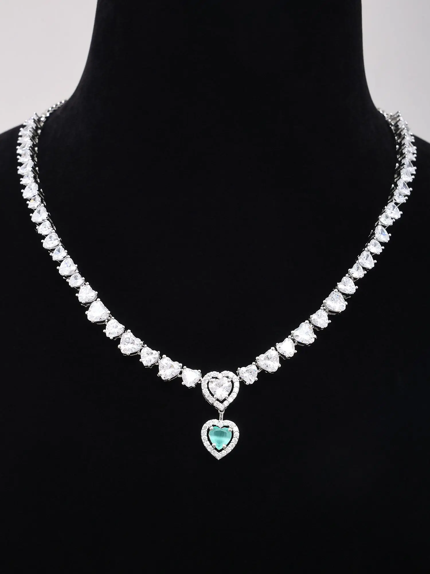 Features a delicate sterling silver chain adorned with sparkling heart-cut zircon stones.