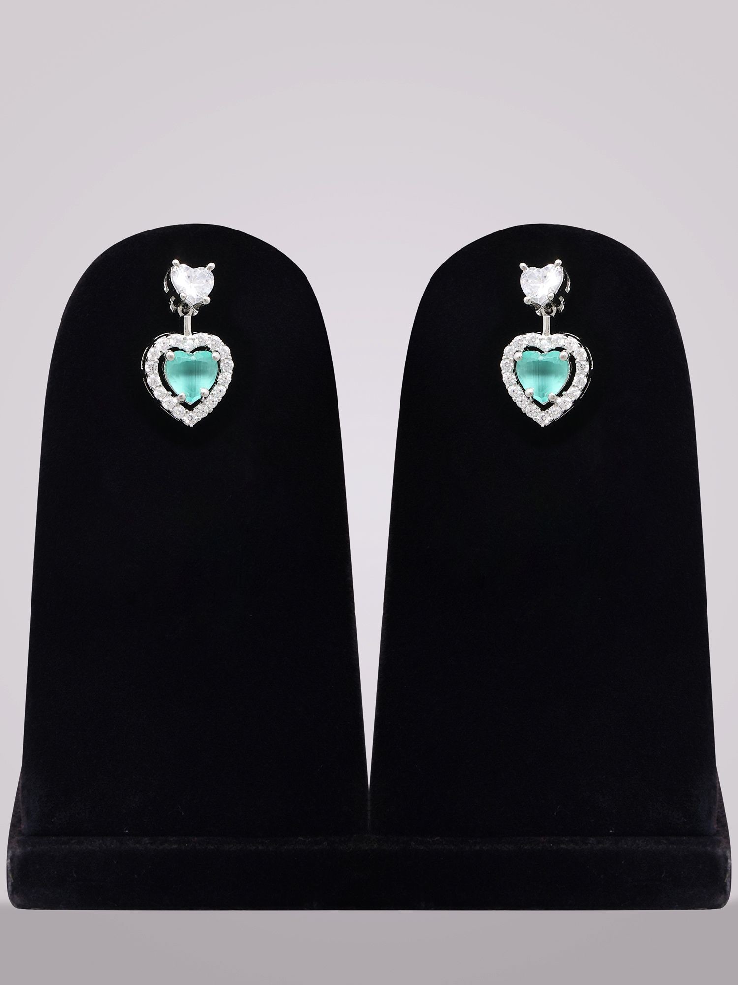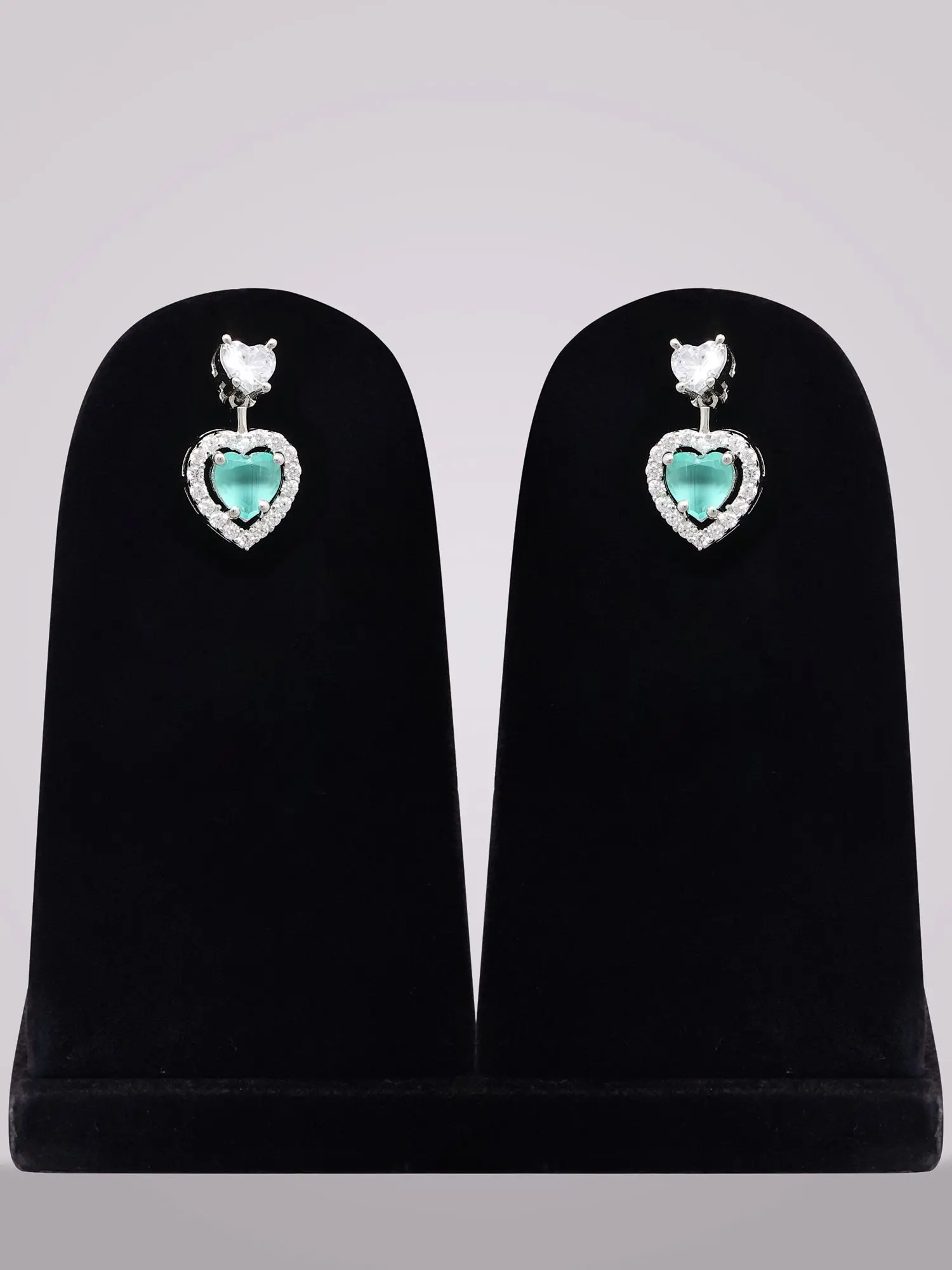 Includes matching heart-shaped zircon stud earrings for a coordinated look.