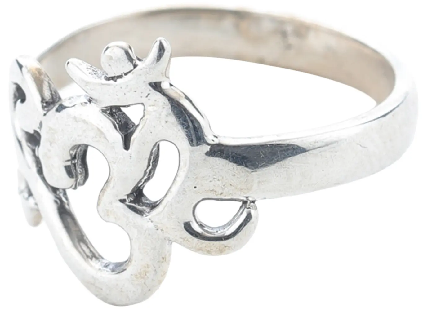 Made from gleaming sterling silver, this ring is not only elegant but also durable, designed to withstand everyday wear. The smooth, polished surface enhances the intricate details of the design, catching the light with every movement. Its quality ensures it will remain a cherished piece in your collection for years to come. The openwork style of the Om symbol allows the light to pass through, creating interesting shadows and highlighting its unique shape. The thoughtful design and quality materials combine to create a truly special piece.