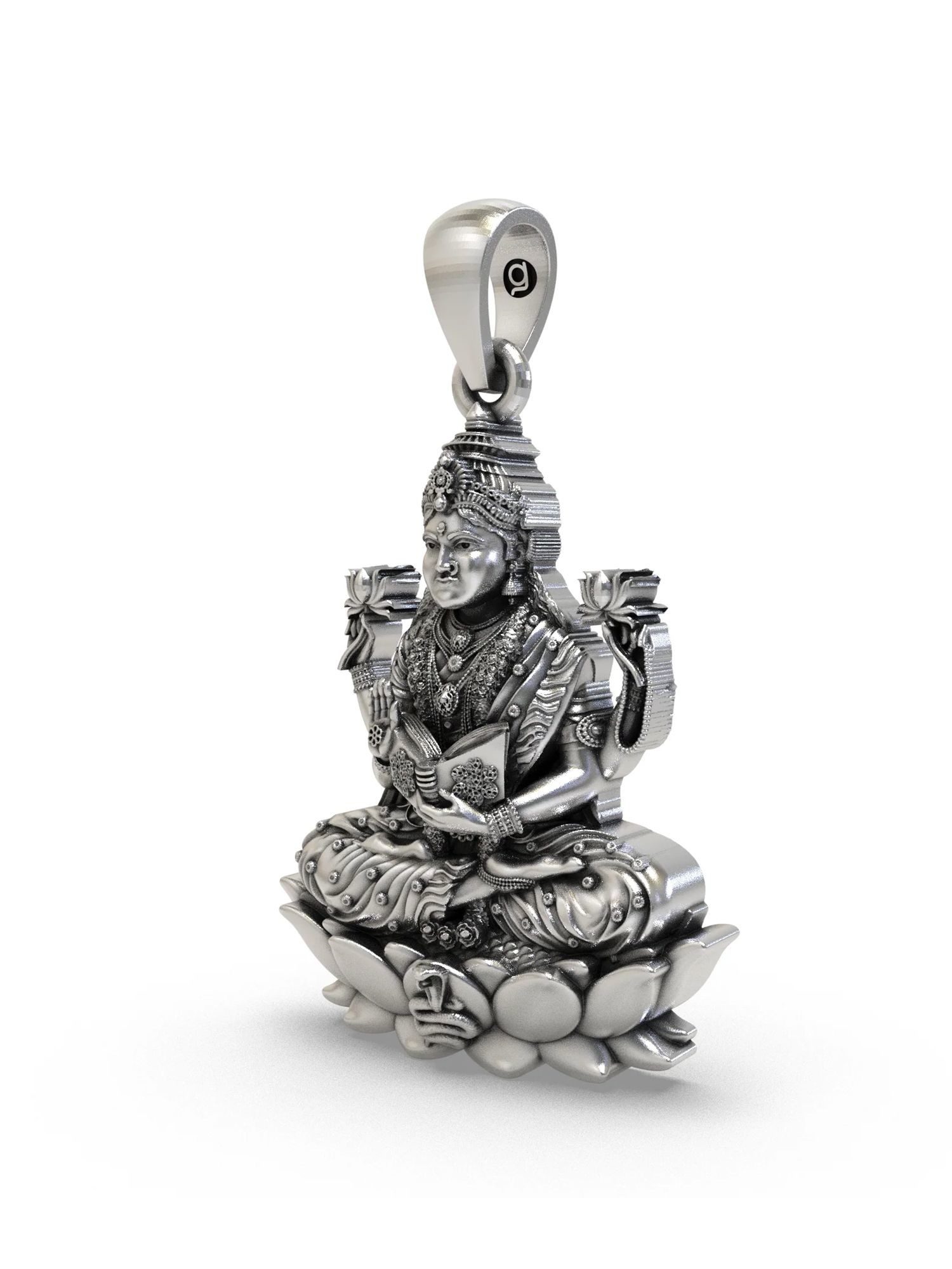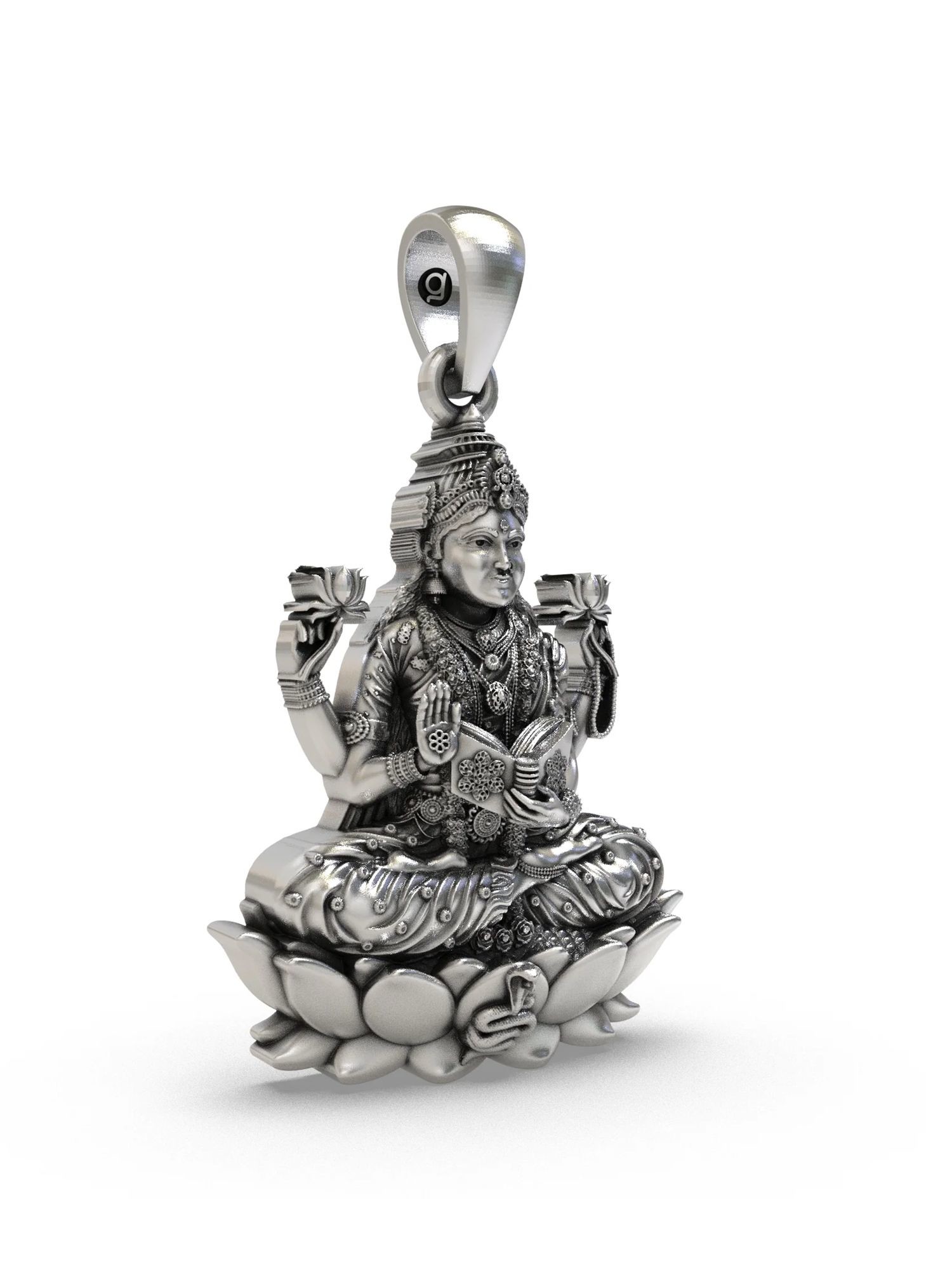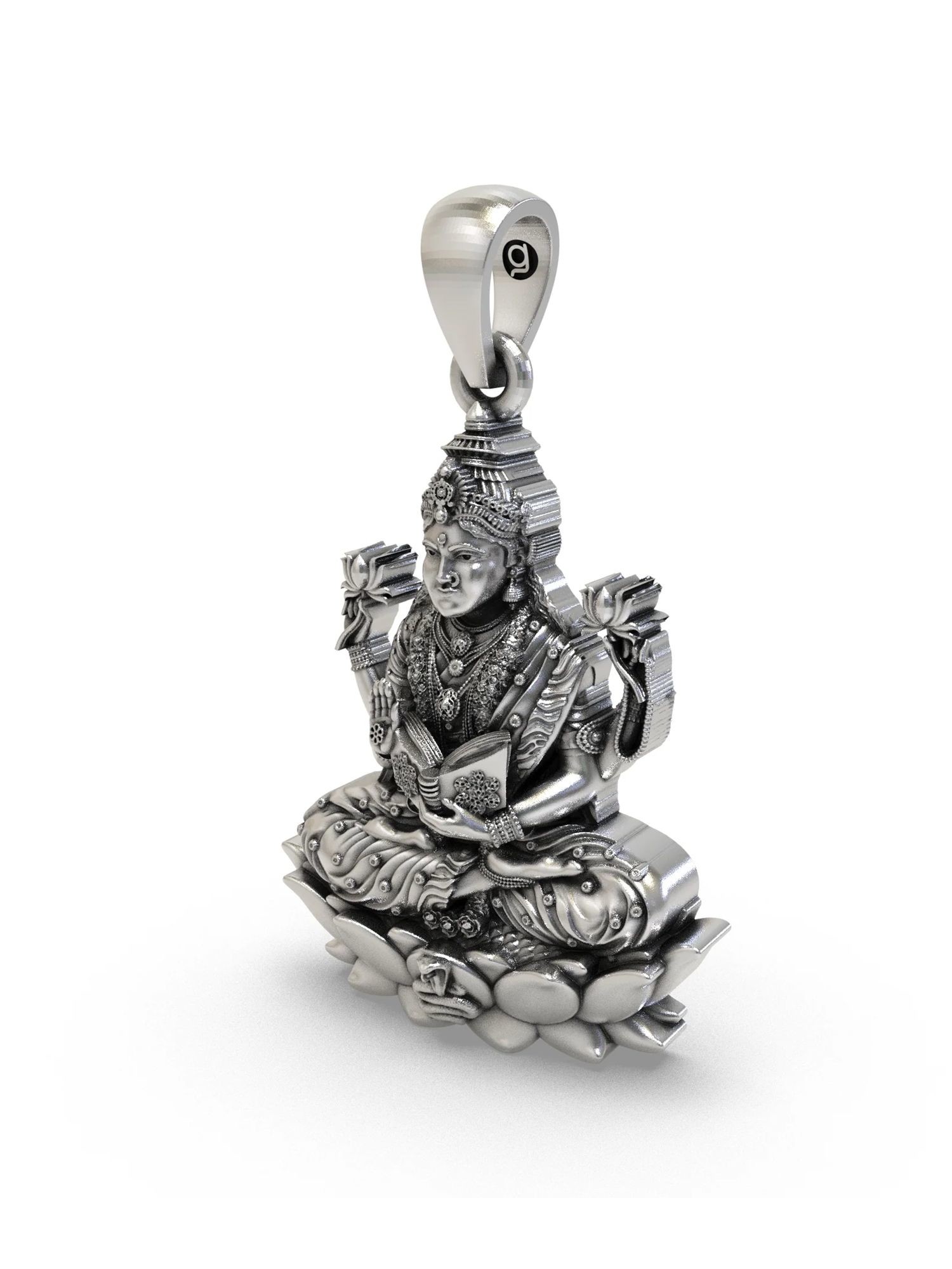 The pendant depicts the goddess seated on a lotus, symbolizing purity and spiritual awakening.