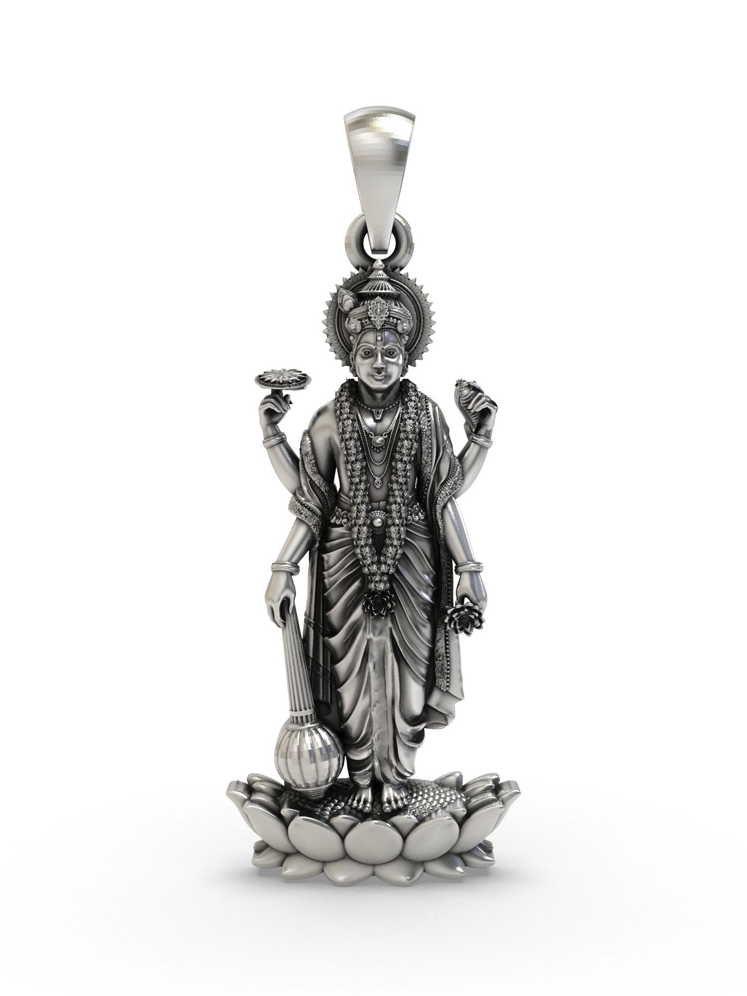 Sterling Silver Pendant of Standing Lord Vishnu