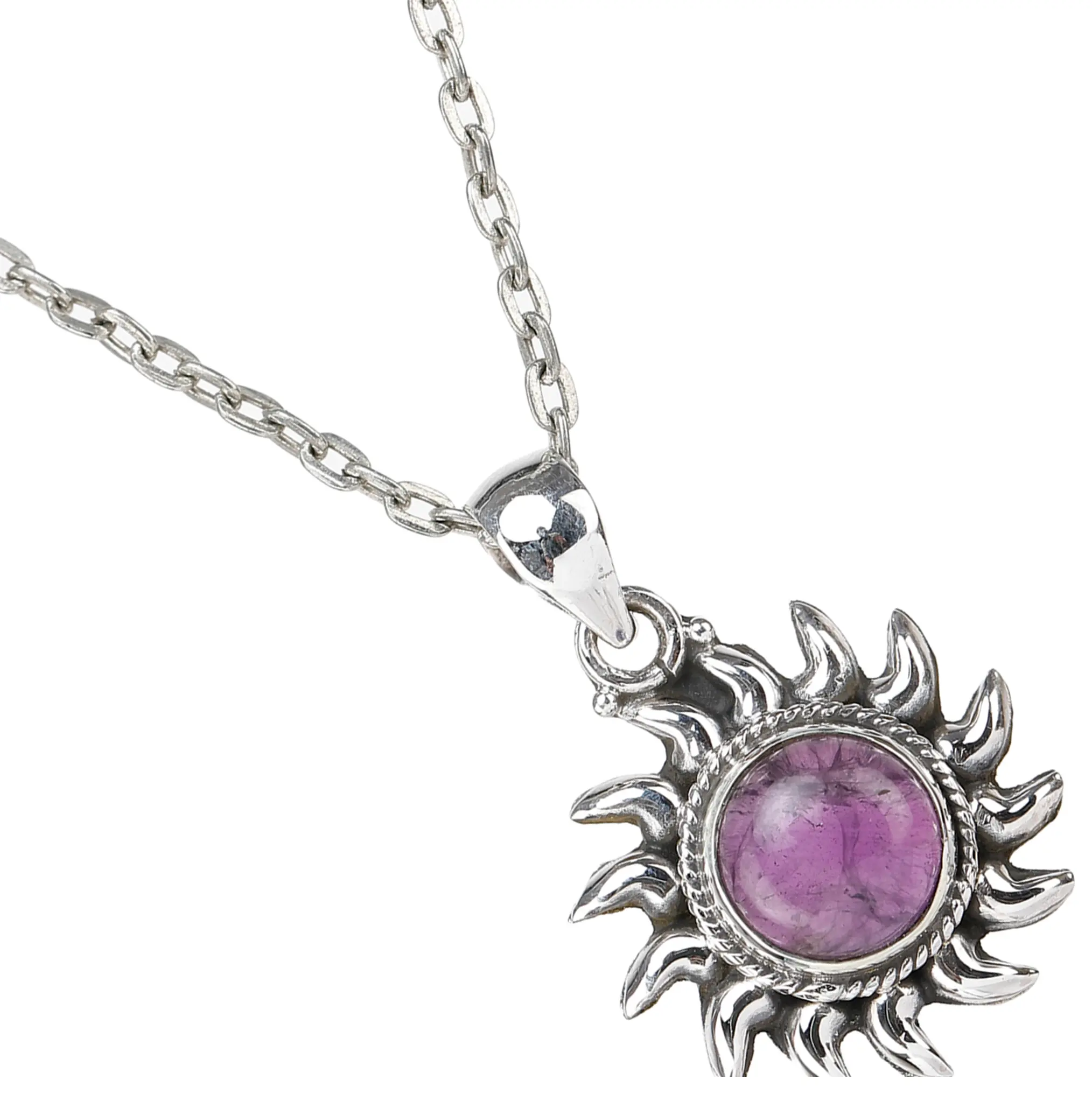 Surya, known as the Sun, is the focus of this amethyst pendant. Made of sterling silver and centred with an amethyst pendant, this pendant measures at 1 inch in height and 0.5 inch in width, weighing 3.5 grams. To complete the necklace, add a chain for a full set. The chain is available in three different lengths, measuring between 16 to 20 inches long. Similar to the pendant, the chain is also made of high quality sterling silver which is rust-resistant. As the smaller version of this pendant, it is perfect for customers who prefer a more understated look, yet does not compromise on beauty and aura.
