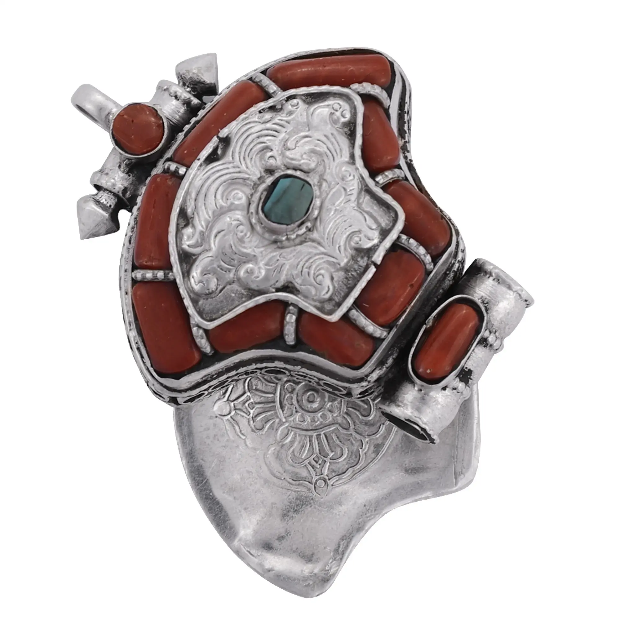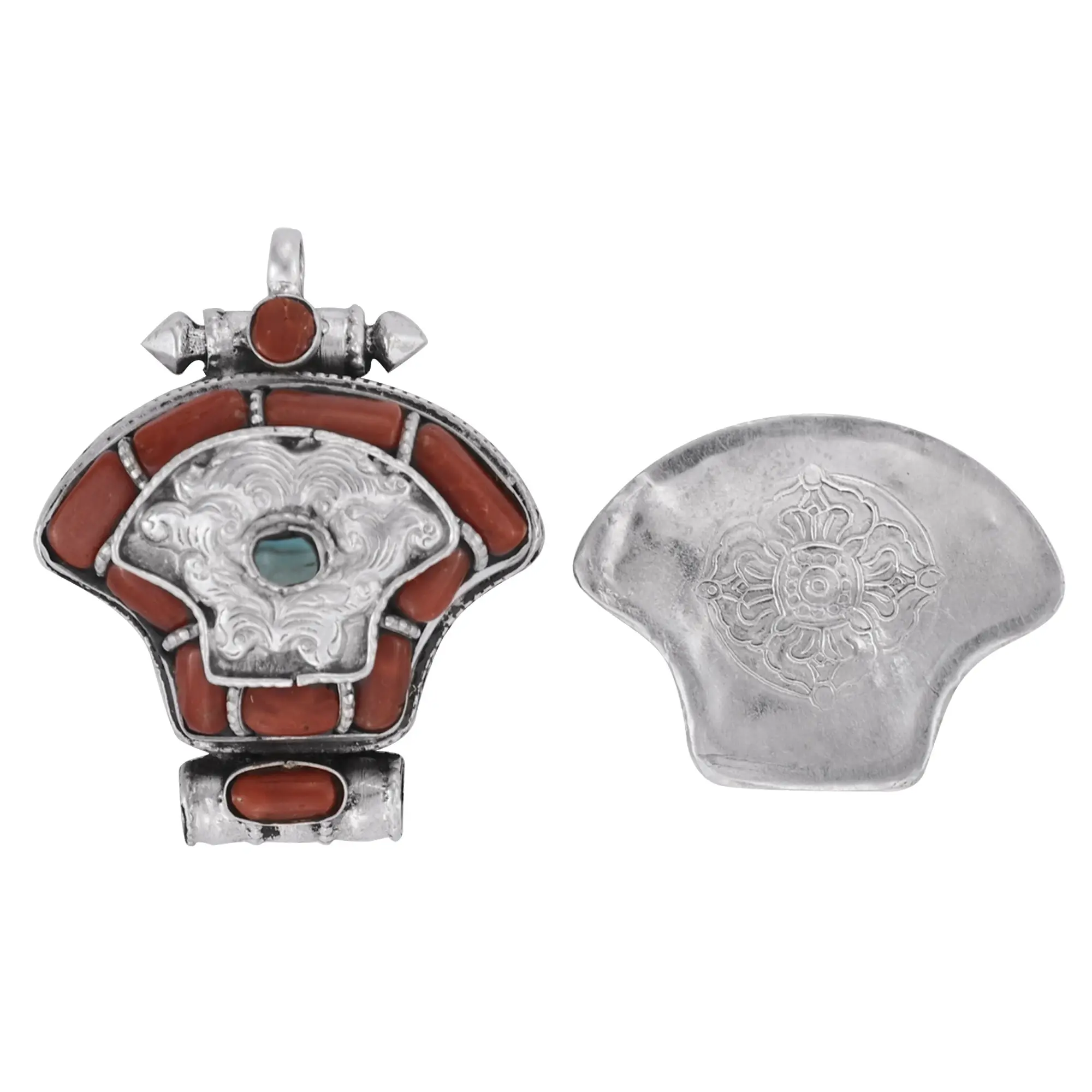 Floral Multicolor Gemstones Pendant in Inverted Curved Silver Heart
