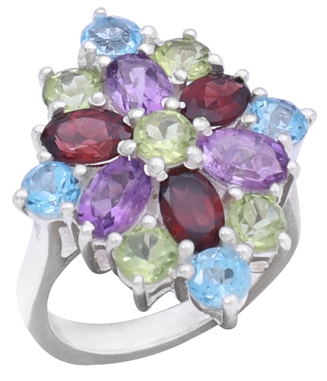 Sterling Silver Ring with Peridot, Garnet, Amethyst, and Blue Topaz Gemstones