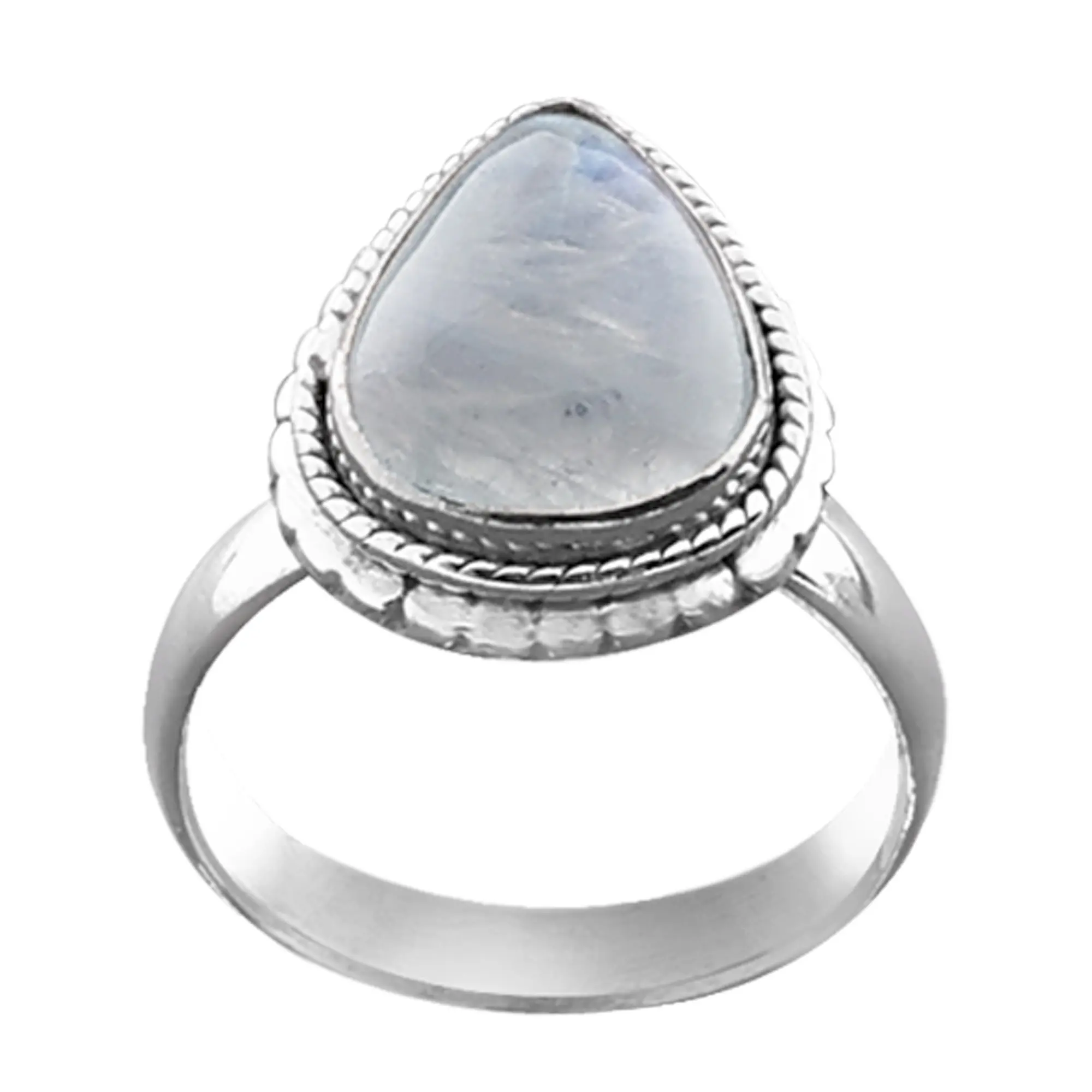 Sterling Silver Ring with Teardrop Rainbow Moonstone Gemstone