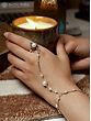 Embrace a touch of timeless elegance and distinctive style with this handcrafted piece of hand jewelry. This unique adornment elegantly bridges the gap between ring and bracelet, creating a seamless and eye-catching statement piece. Crafted with meticulous attention to detail, it's designed to elevate your everyday look or add a special flourish to your evening attire. The design features a delicate chain that gracefully connects a ring worn on your finger to a bracelet encircling your wrist. This subtle yet striking connection makes it a conversation starter and a testament to refined taste. It's an unconventional approach to accessorizing that's sure to capture attention and admiration.