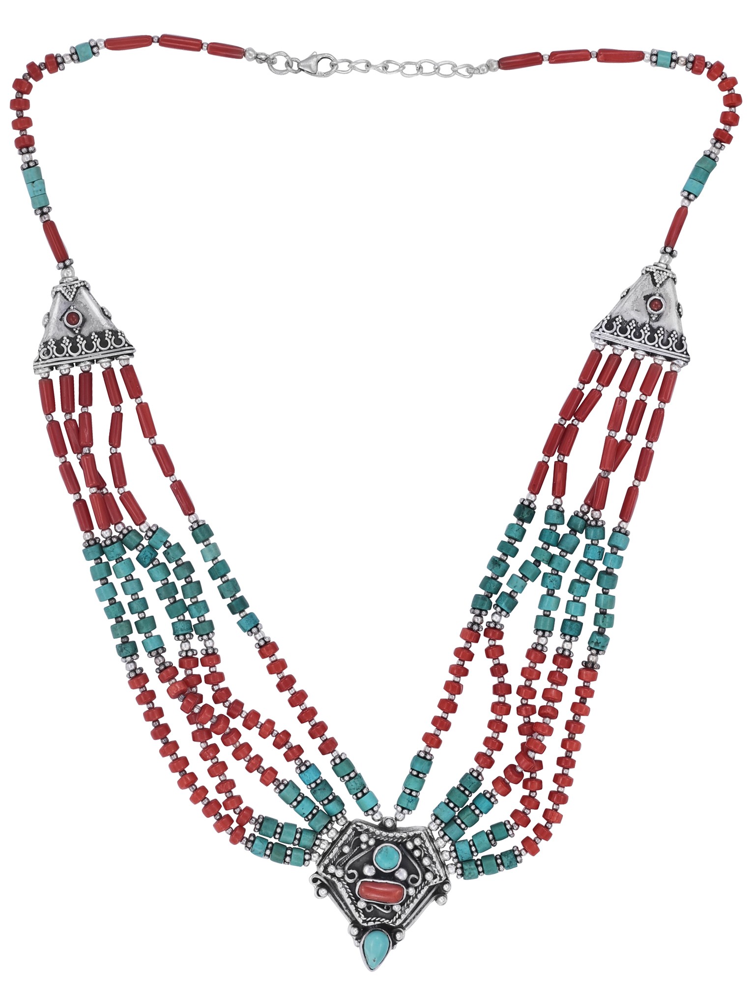 Drape yourself in the subtle elegance featuring coral and turquoise stones harmonious blend of simplicity and natural allure. The sterling silver setting gracefully embraces the earthy hues of coral and turquoise stones, creating a necklace that exudes refined charm with a touch of southwestern inspiration. Adorn your necklace with this piece to add a subtle yet distinctive accent to your ensemble, showcasing the timeless appeal of sterling silver paired with the organic beauty of gemstones.