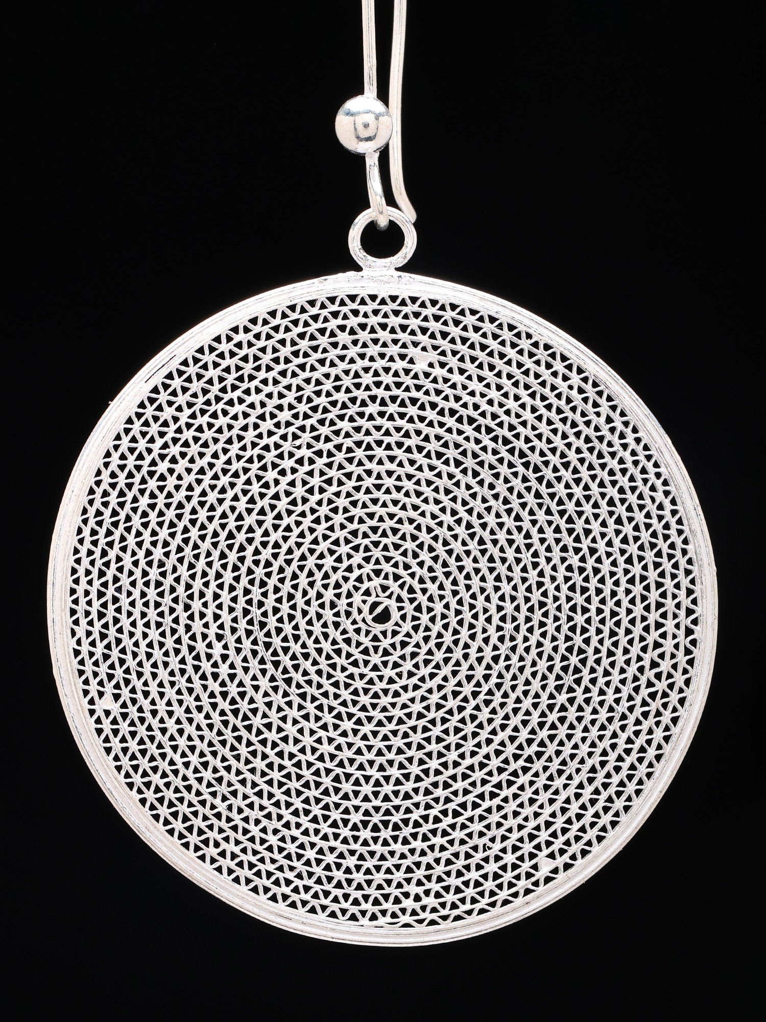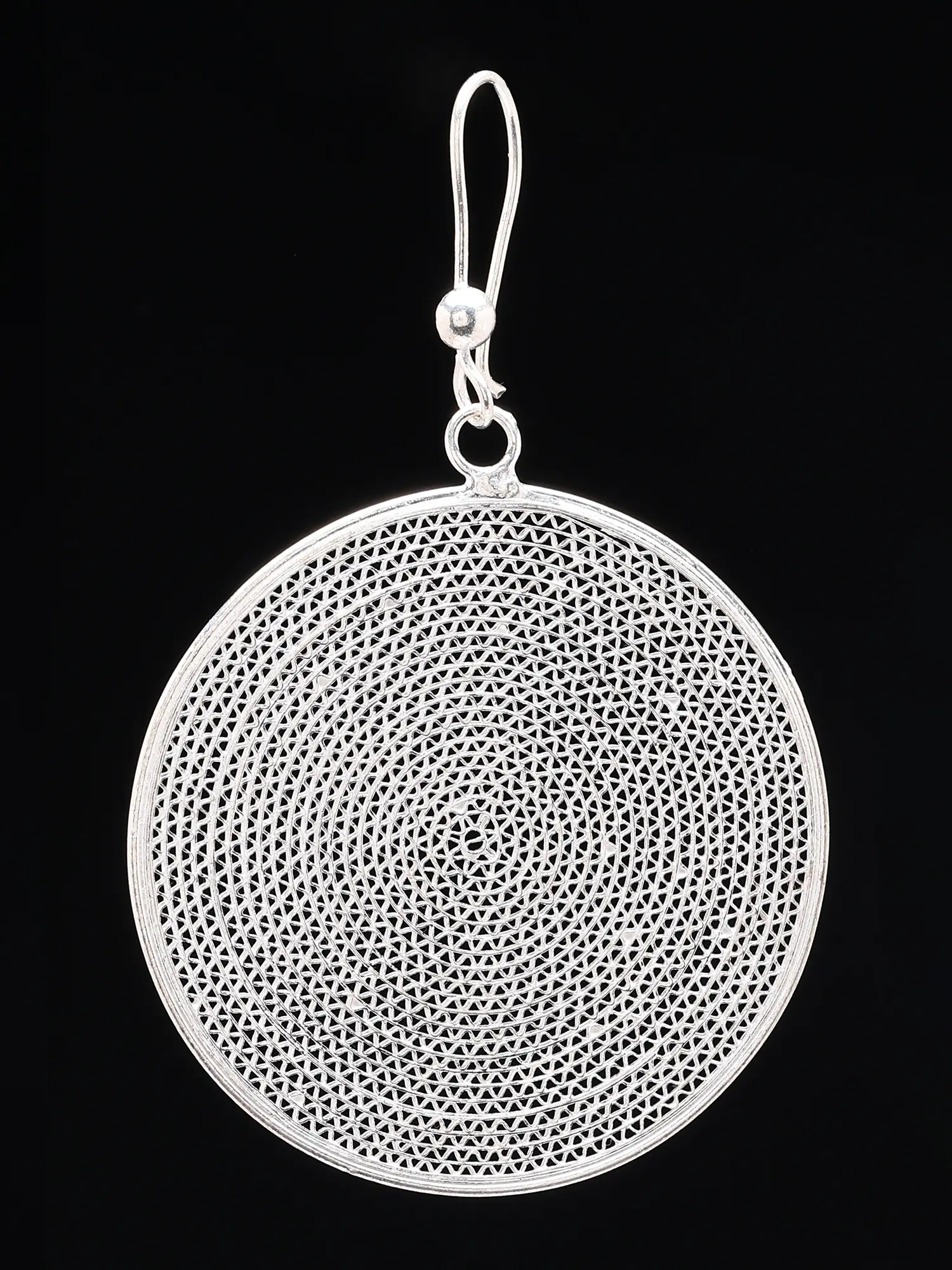 Intricate filigree craftsmanship in a delicate, lace-like sterling silver pattern.