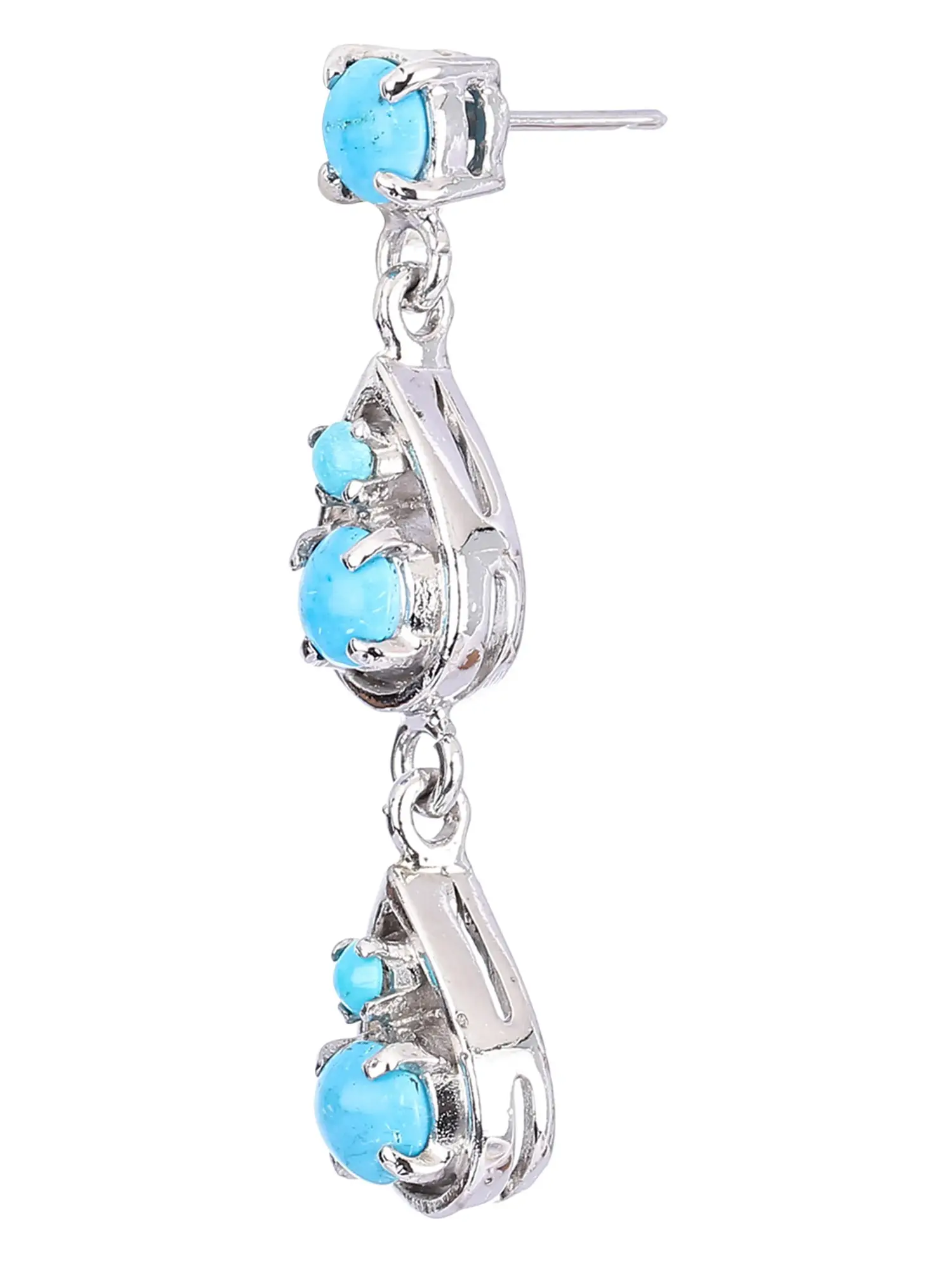Sterling Silver Earrings with Sparkling Blue Cubic Zirconia Stones