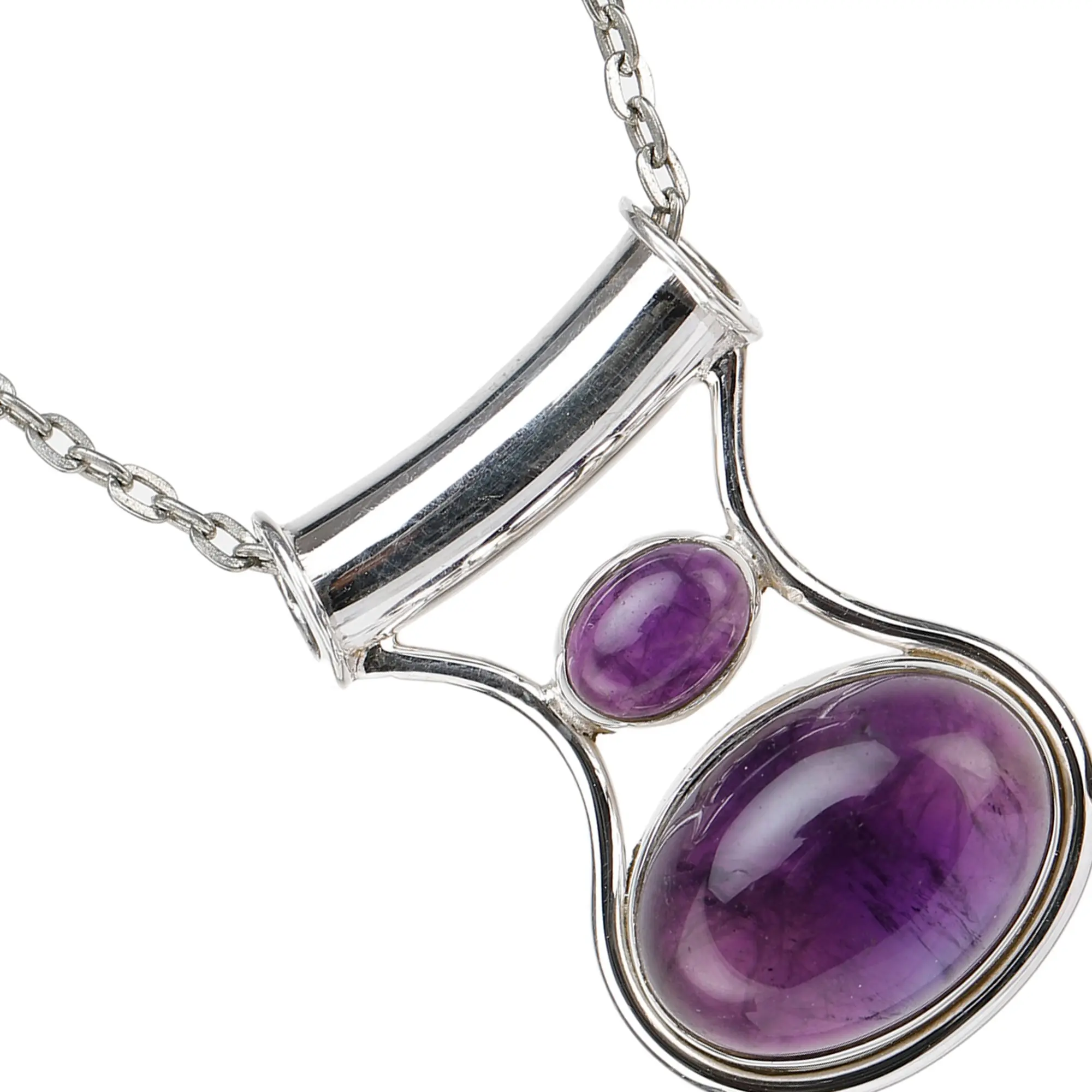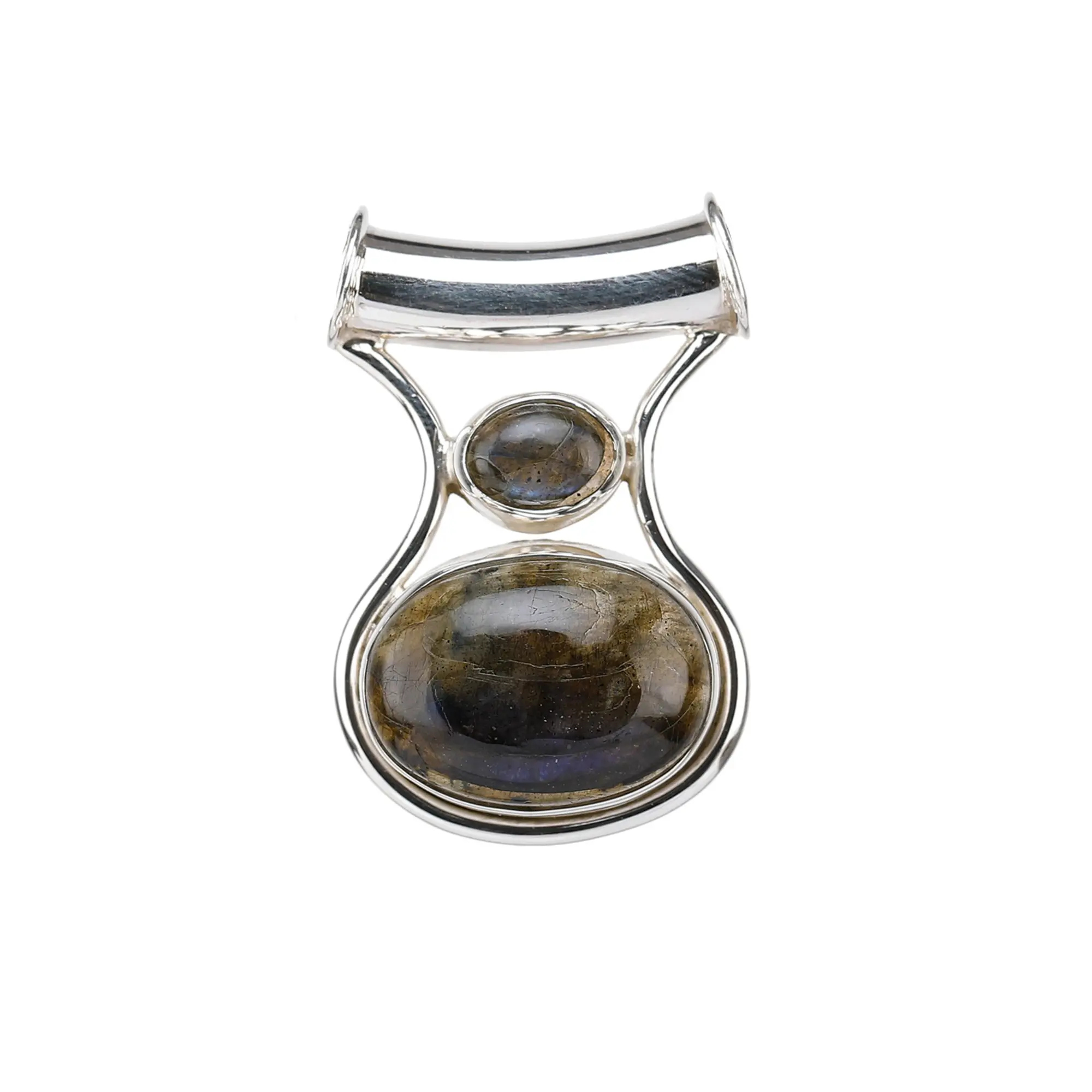 Indulge in the elegance of the Twin Gemstone Pendant made with sterling silver. The sleek design and the alluring beauty of the gemstone create a captivating and chic accessory. Made from sterling silver, this pendant adapts the sleek antique look with its uniquely shaped gemstones.