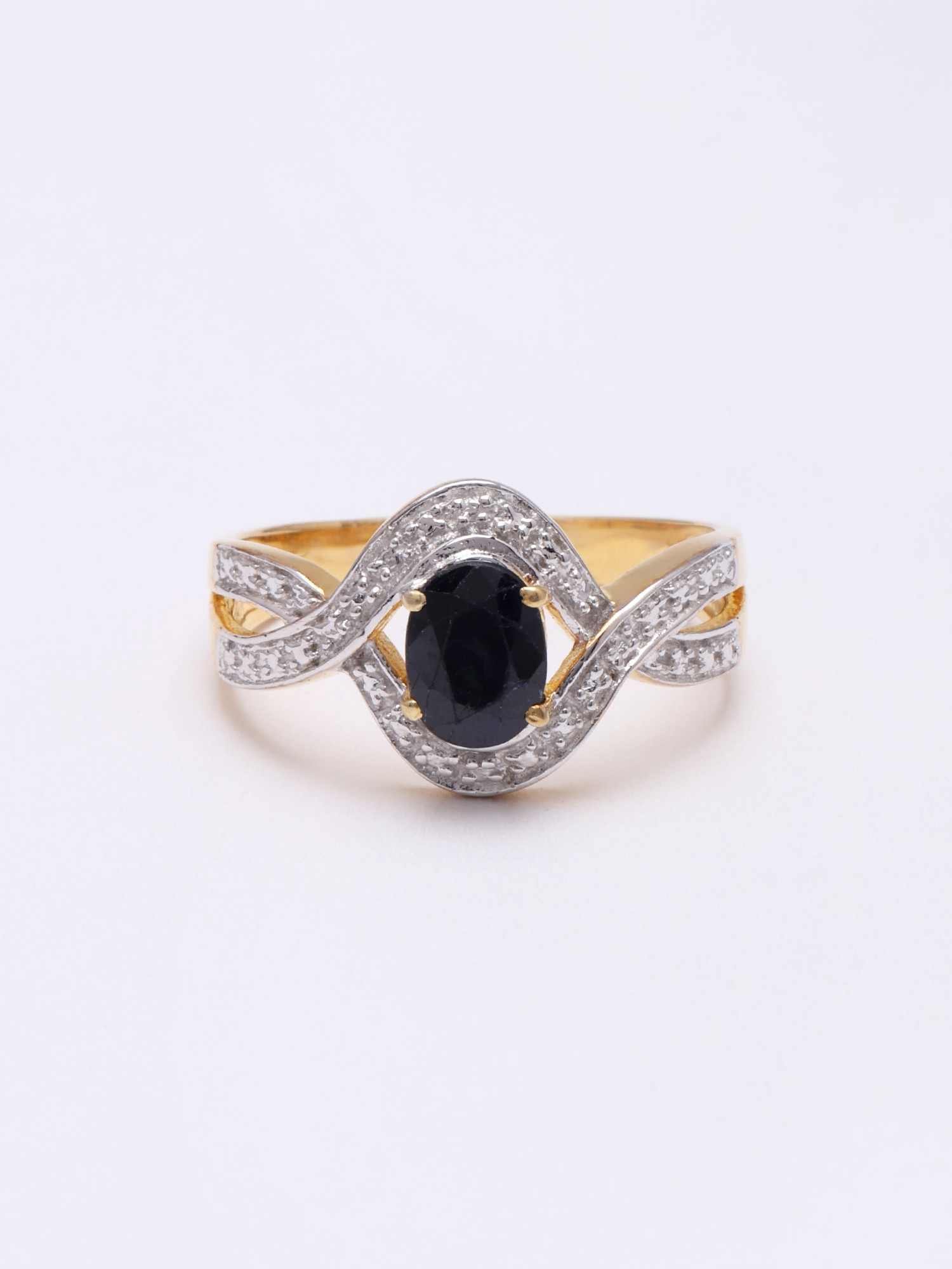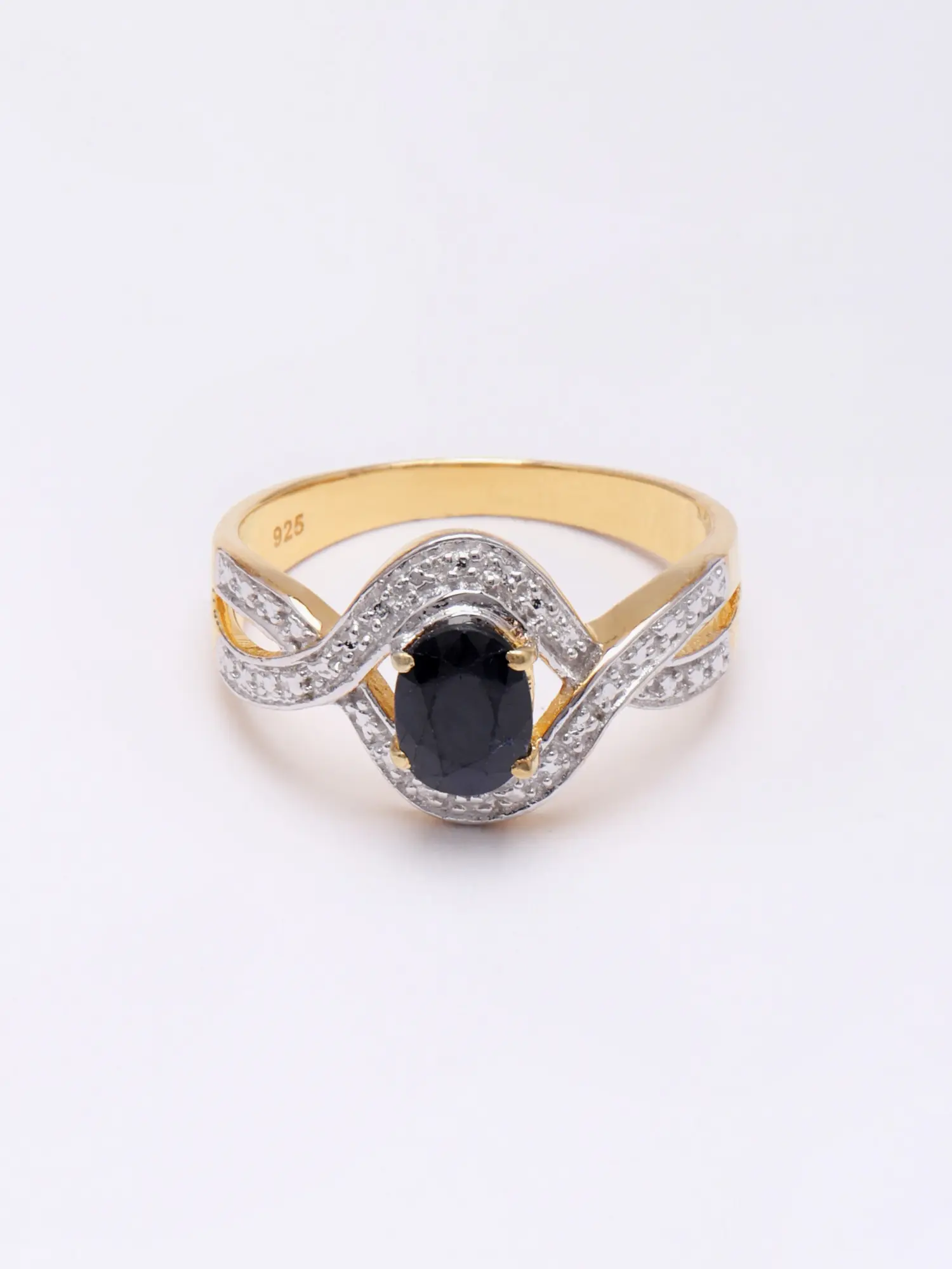 Oval Shape Faceted Black Onyx Ring with Cubic Zirconia