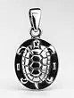 The centerpiece is a masterfully sculpted tortoise, its shell boasting a detailed tessellation that mimics natural perfection. Its head and limbs are subtly defined, hinting at graceful movement. Encircling the tortoise, a polished border provides a striking contrast, framing the central motif with understated sophistication. Measuring a delicate 1.2 inches in height and 0.8 inches in width, its dimensions offer a captivating presence without being overwhelming.