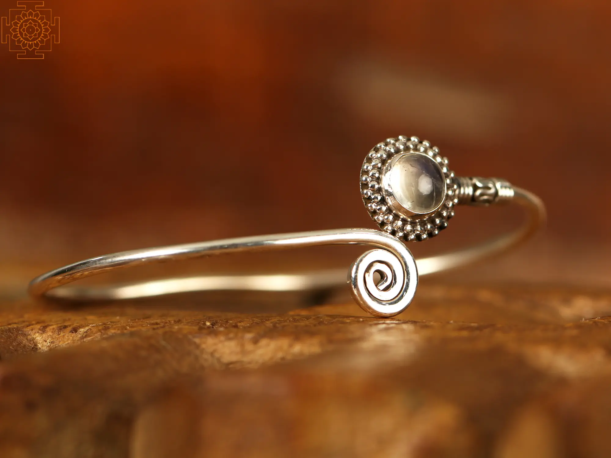 As it wraps around the wrist, the spiral design adds a touch of dynamic movement, while the stones impart a sense of earthy charm. Whether worn alone or stacked with other bracelets, this piece elevates any ensemble with its unique style and effortless grace, making it a must-have accessory for enhancing any look.