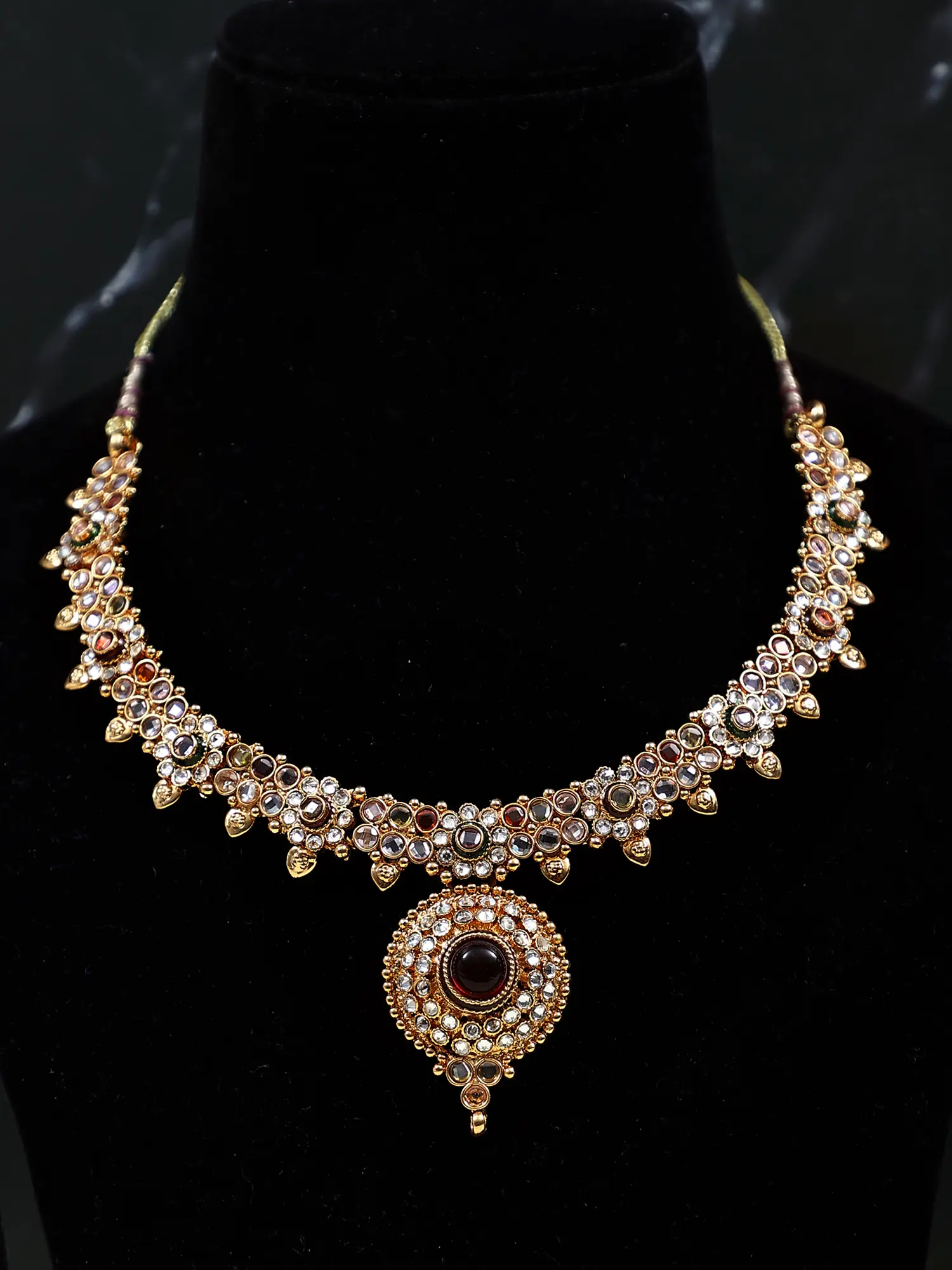 Elevate your style with our Stone Designer Necklace with Earring Set, a striking ensemble that adds a touch of glamor to your look. The intricately designed necklace features carefully placed stones, creating a captivating and elegant piece. The coordinating earrings complete the set, enhancing your overall ensemble with sophistication. Grace the allure of the stones, each contributing to the refined beauty of this stunning necklace and earring set.