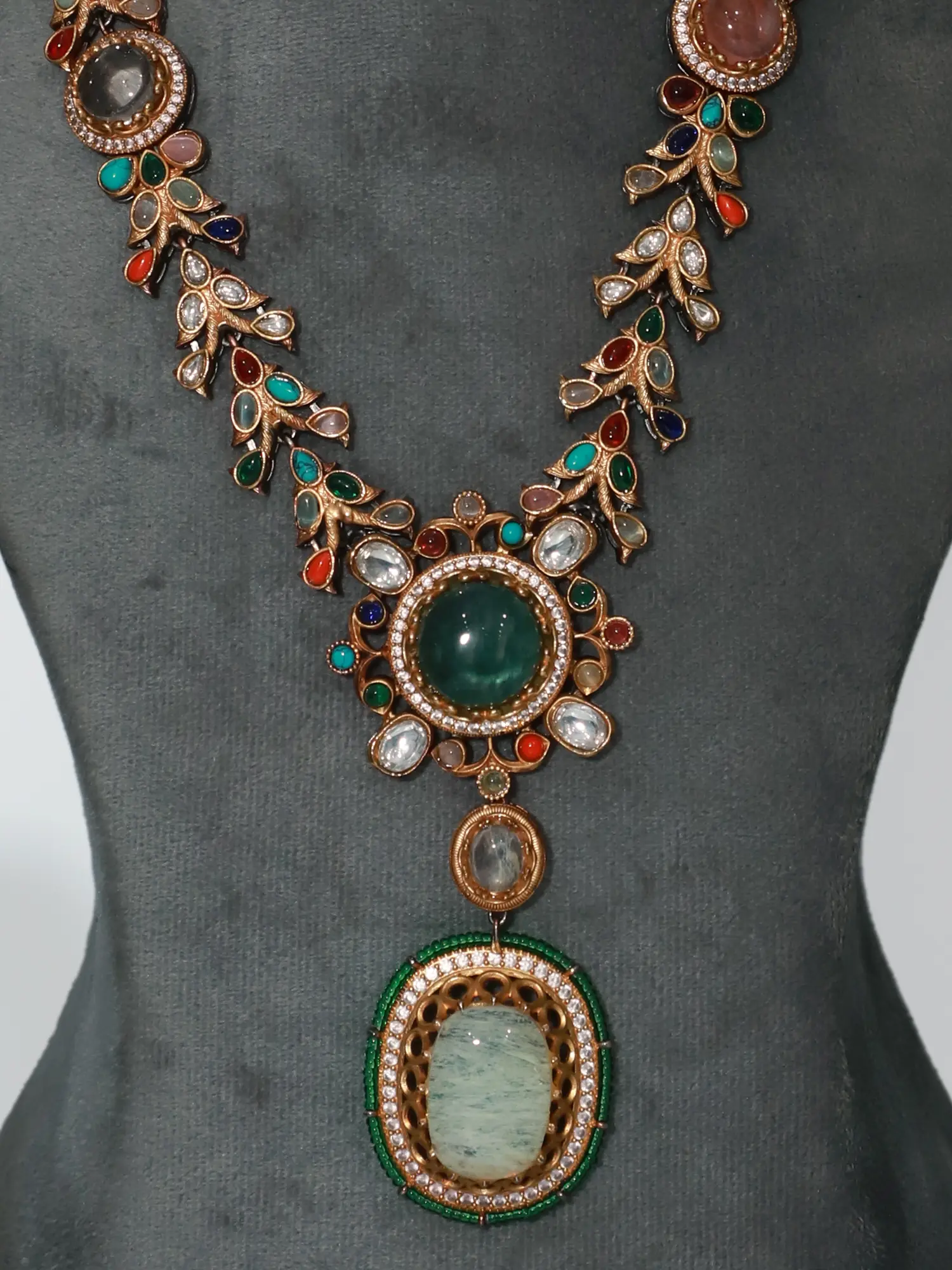 Stunning Stone Studded Mother Of Pearl Necklace With Matching Earrings