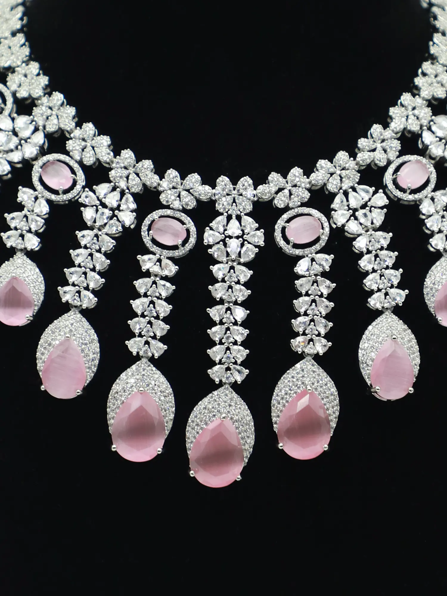 Stone Studded American Diamond Attractive Necklace With Matching Earrings