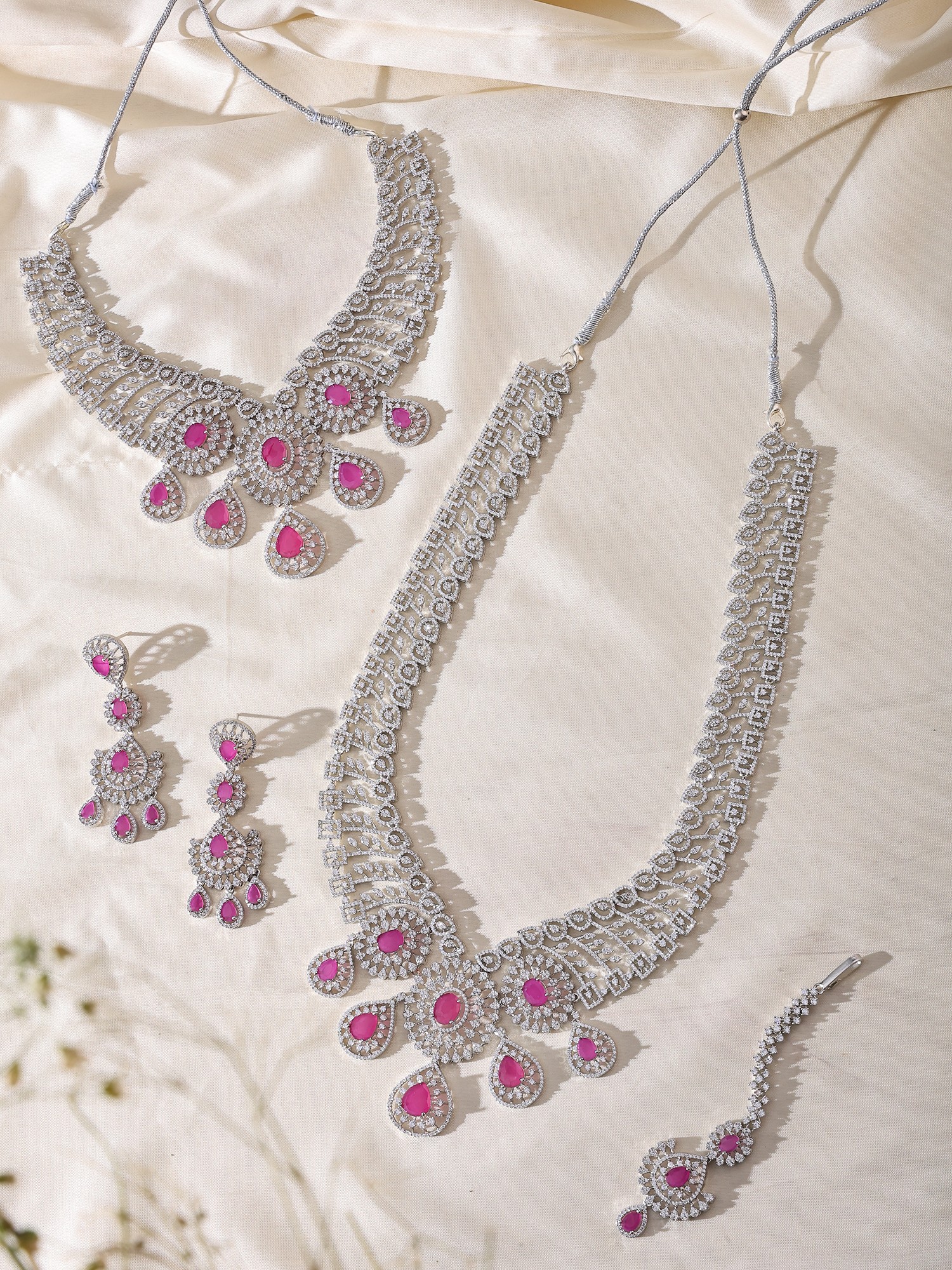 Floral Design Multi Strand American-Diamond Bridal Necklace Set