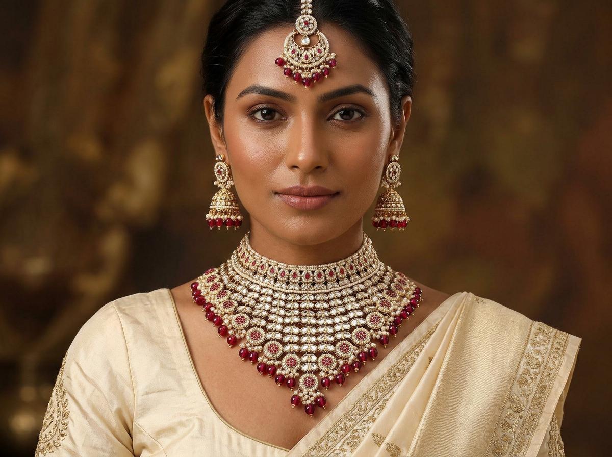 A Majestic Ensemble: Stone-Studded Choker Necklace Set