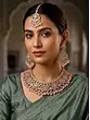 Tri-Color Polki Necklace Set with Mang Tika