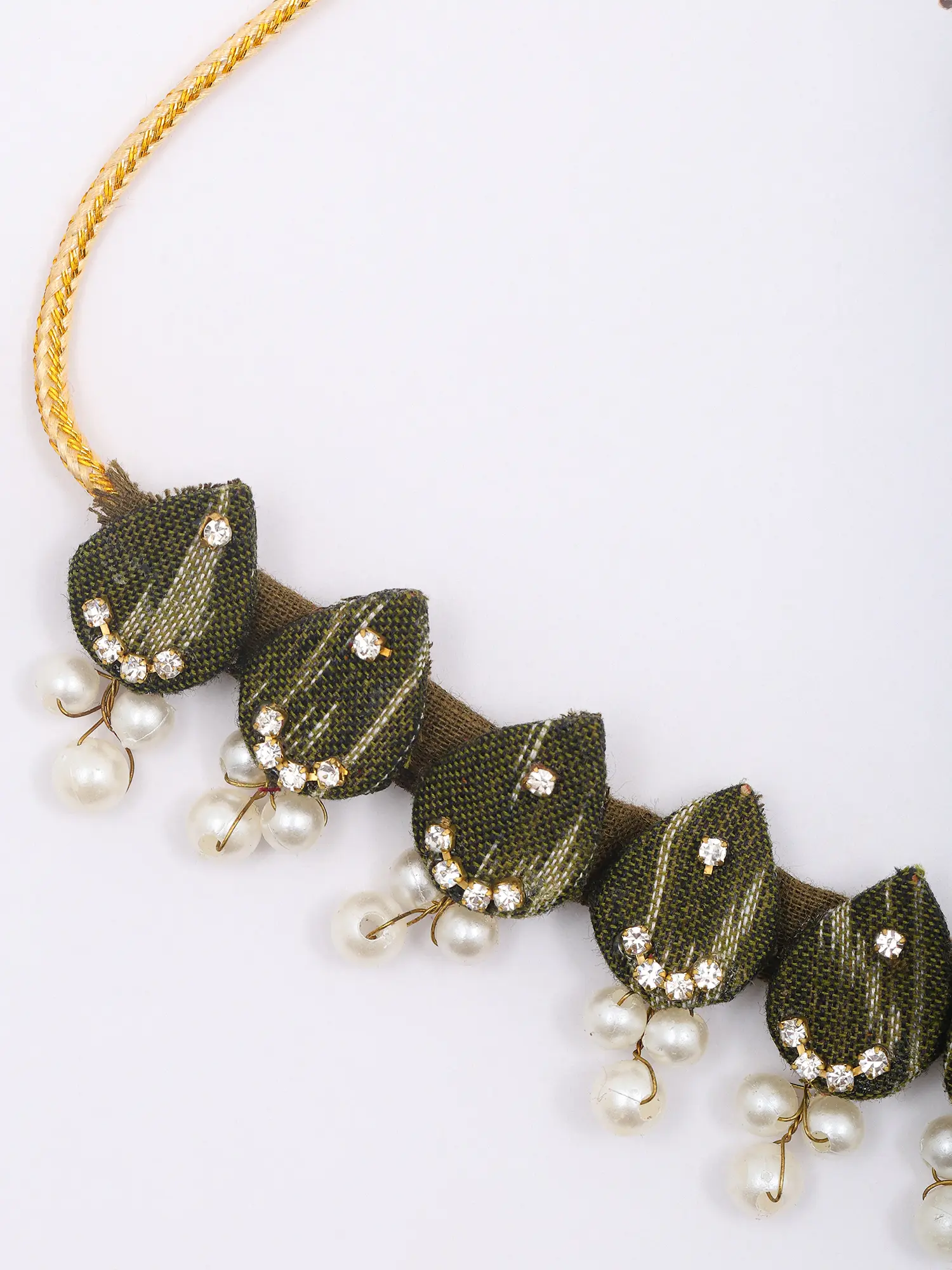 Stone Studded Handloom Sambalpuri Fabric Necklace Set with Earrings