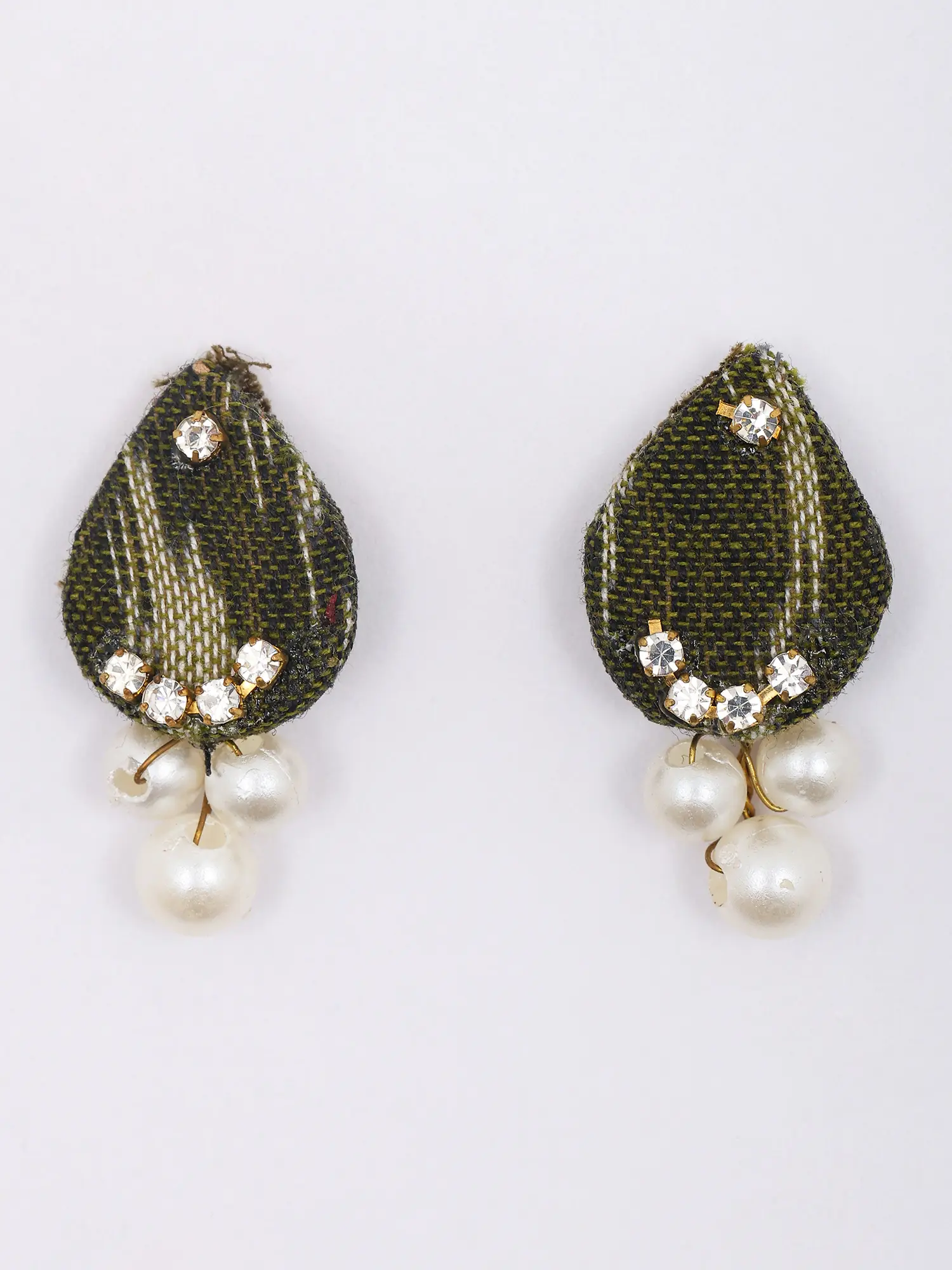 Handloom Sambalpuri Fabric Necklace and Earrings Set with Dangling Tumbled Stone