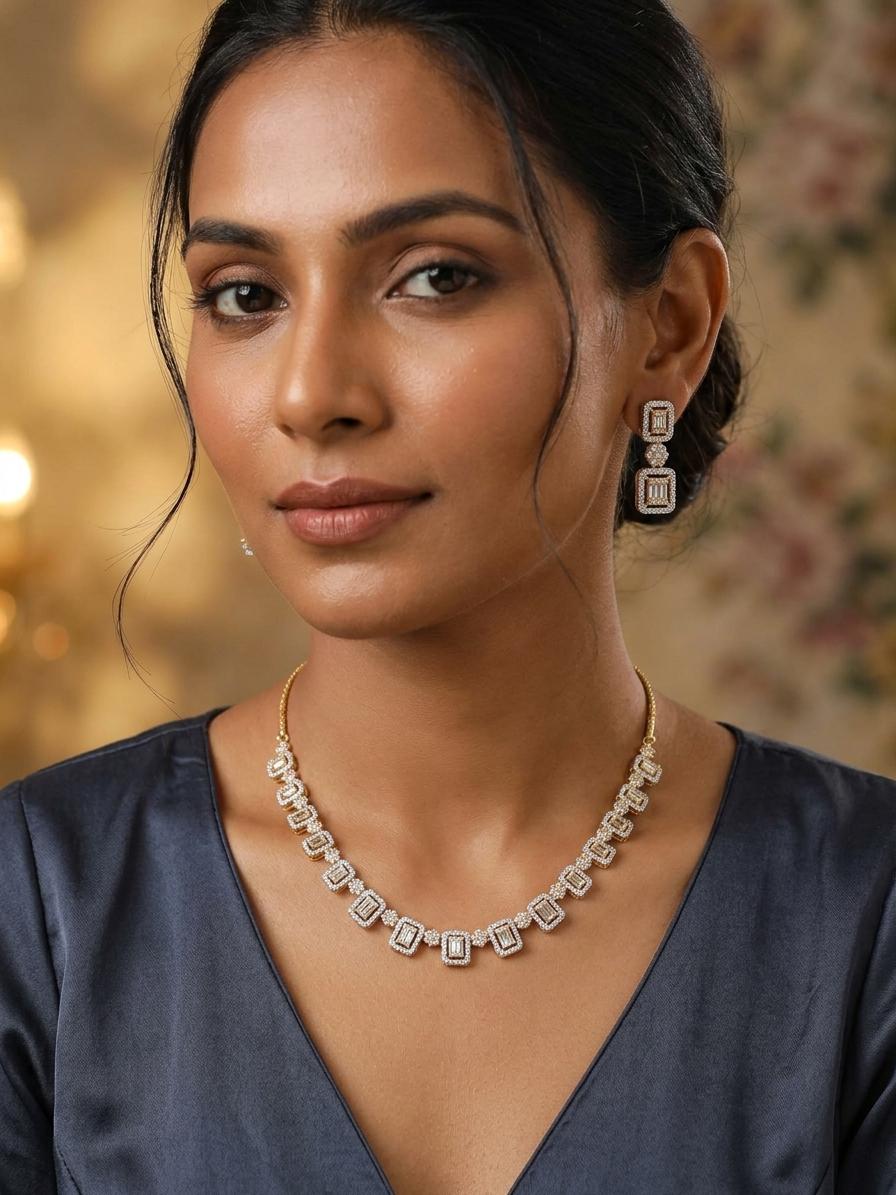 Embellished Stone Studded American Diamond Necklace Set With Earrings