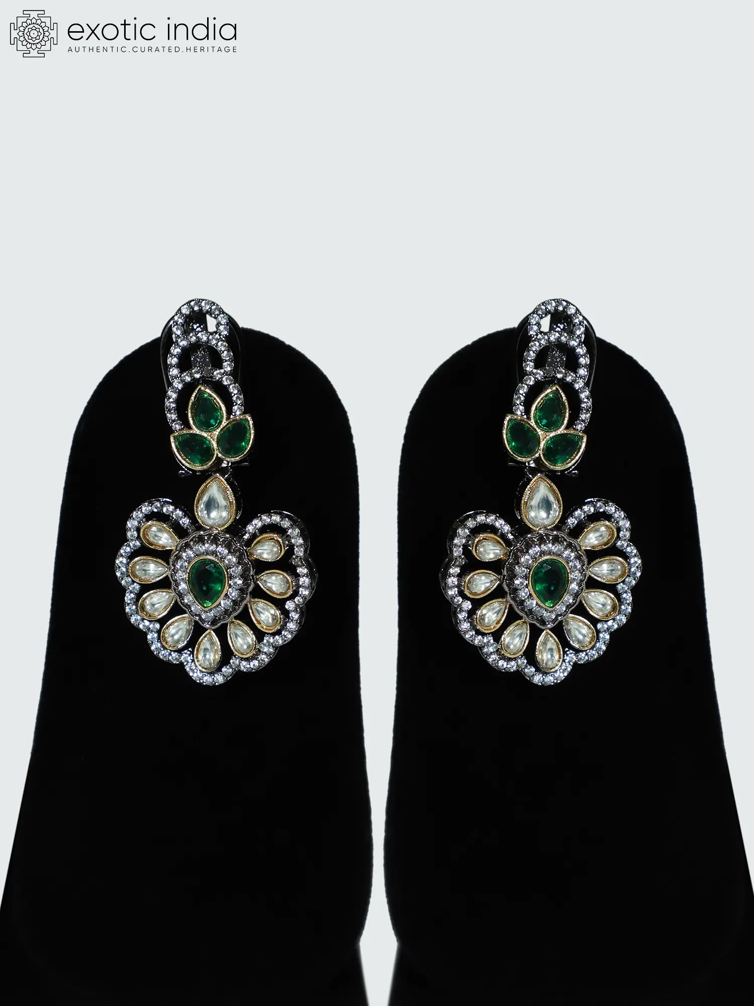Elegant Designer Stone Studded Copper And Kundan Necklace Set With Earrings